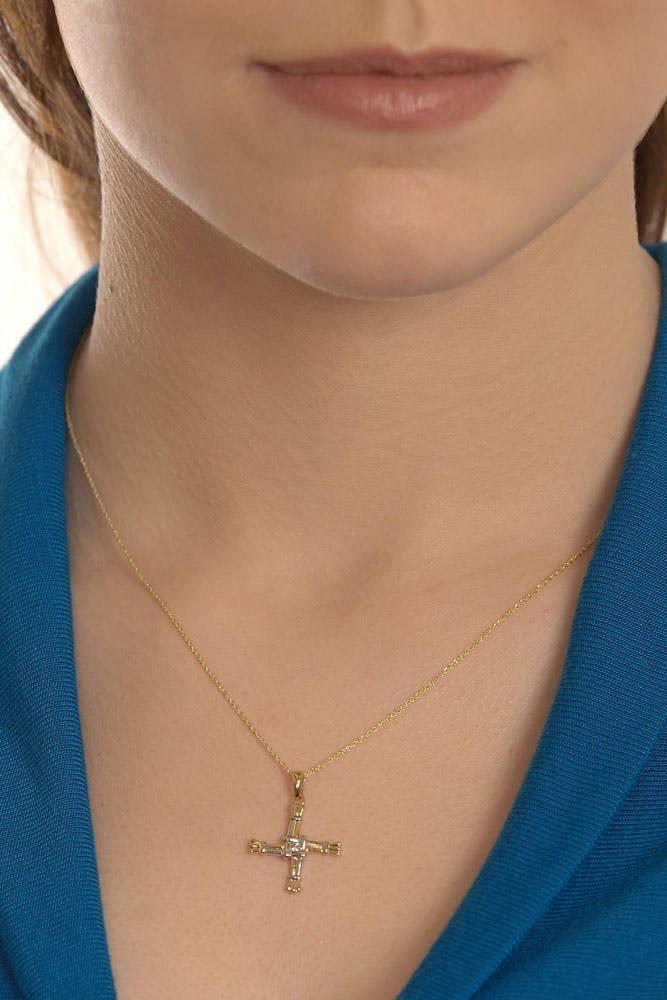 A lovely Two-Tone St Brigid Cross set with a diamond in the centre. A lovely delicate piece of jewellery and a lovely symbol of Ireland worn proudly by many in Ireland and worldwide