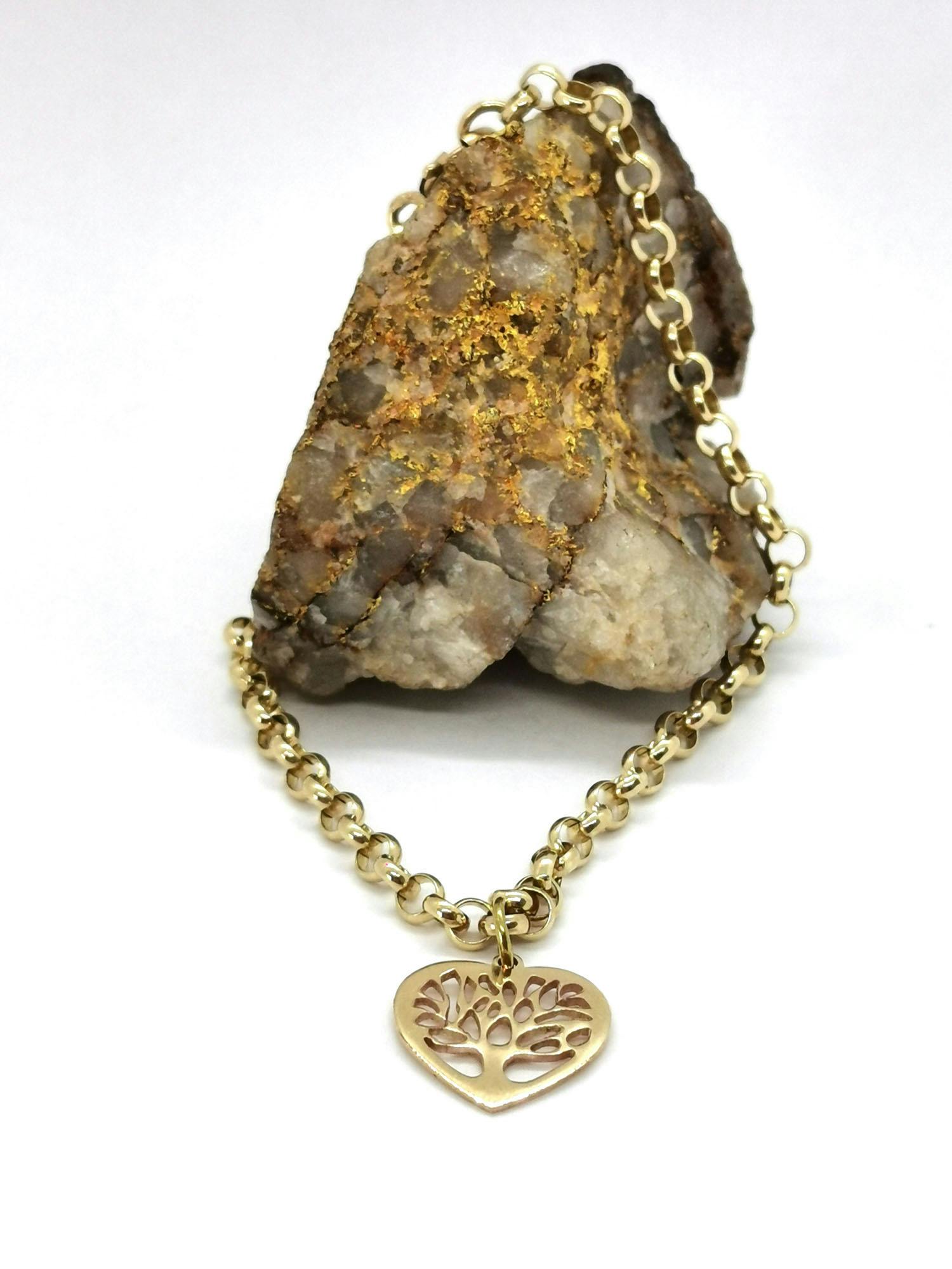 Gold Heart Shaped Tree Of Life Belcher Bracelet