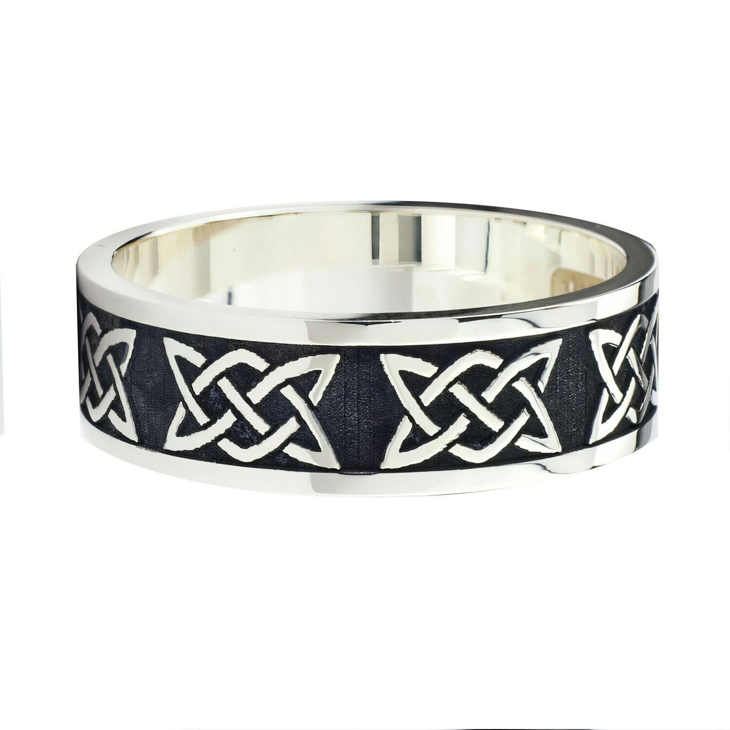 Expertly crafted, the polished trims and matte background showcase the embossed Celtic knots to perfection. Hallmarked at Dublin castle, ensuring premium quality. Crafted with a comfort fit, this is a ring you won't want to take off.