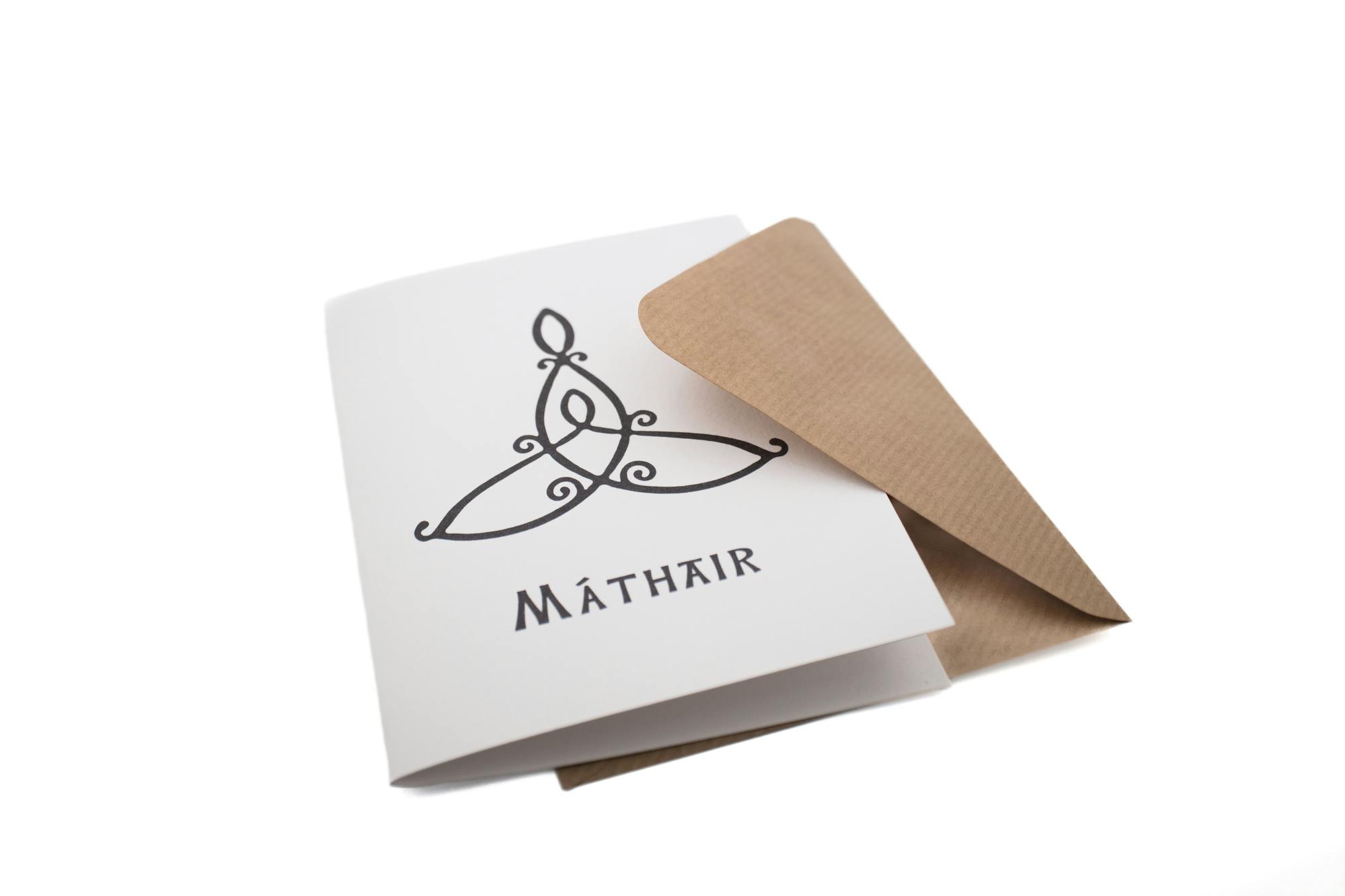 A beautifully illustrated, handcrafted Irish greeting card with the word “Máthair” meaning mother and a Celtic Motherhood knot - perfect for a gift for a new mother or Mother's Day.