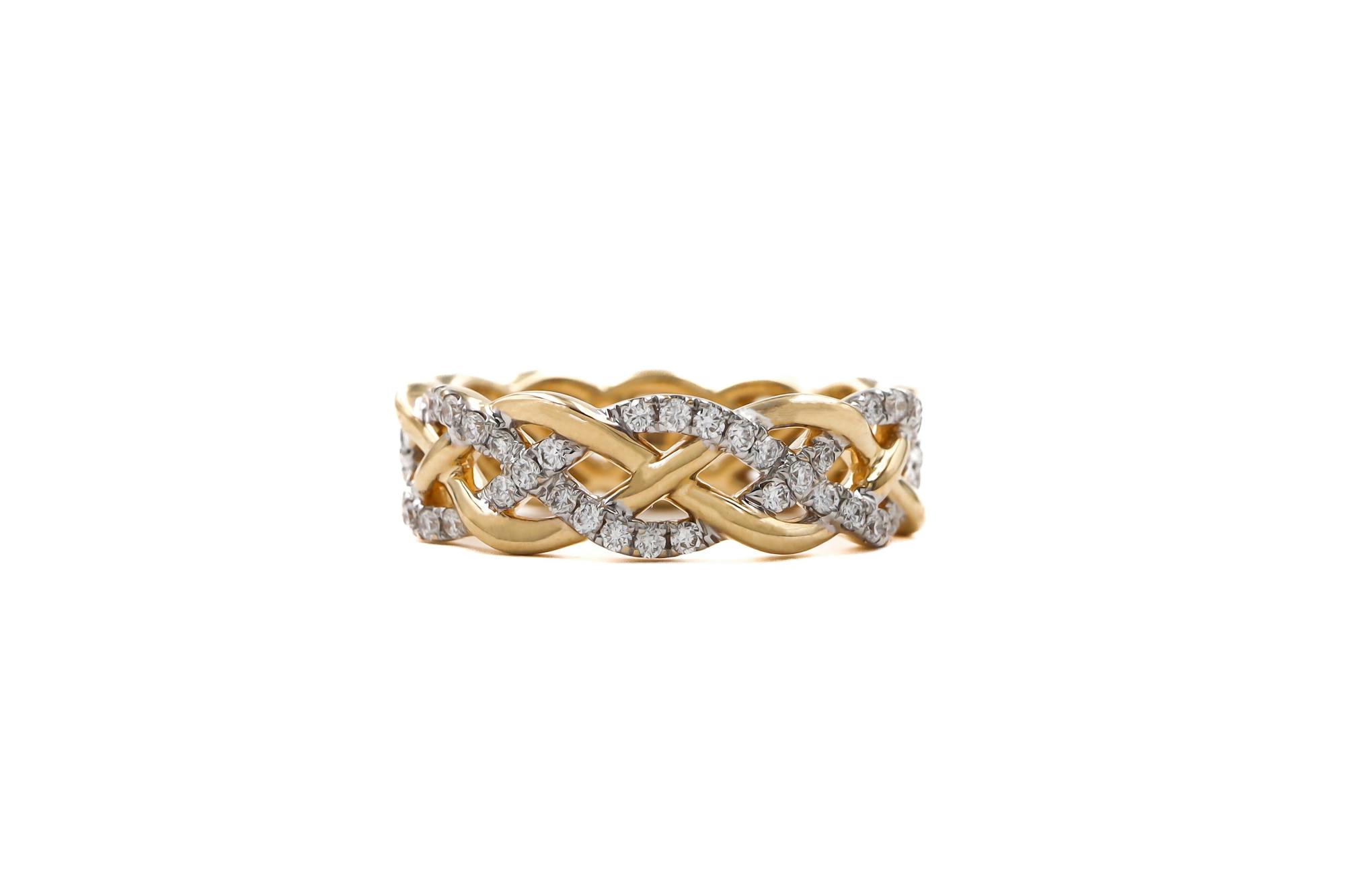 The diamond-studded strands (0.65 TCW) give this ring a beautiful sparkle, depth and dimension. A truly special ring, expertly crafted, hallmarked here in Dublin and shipped with love from Ireland.