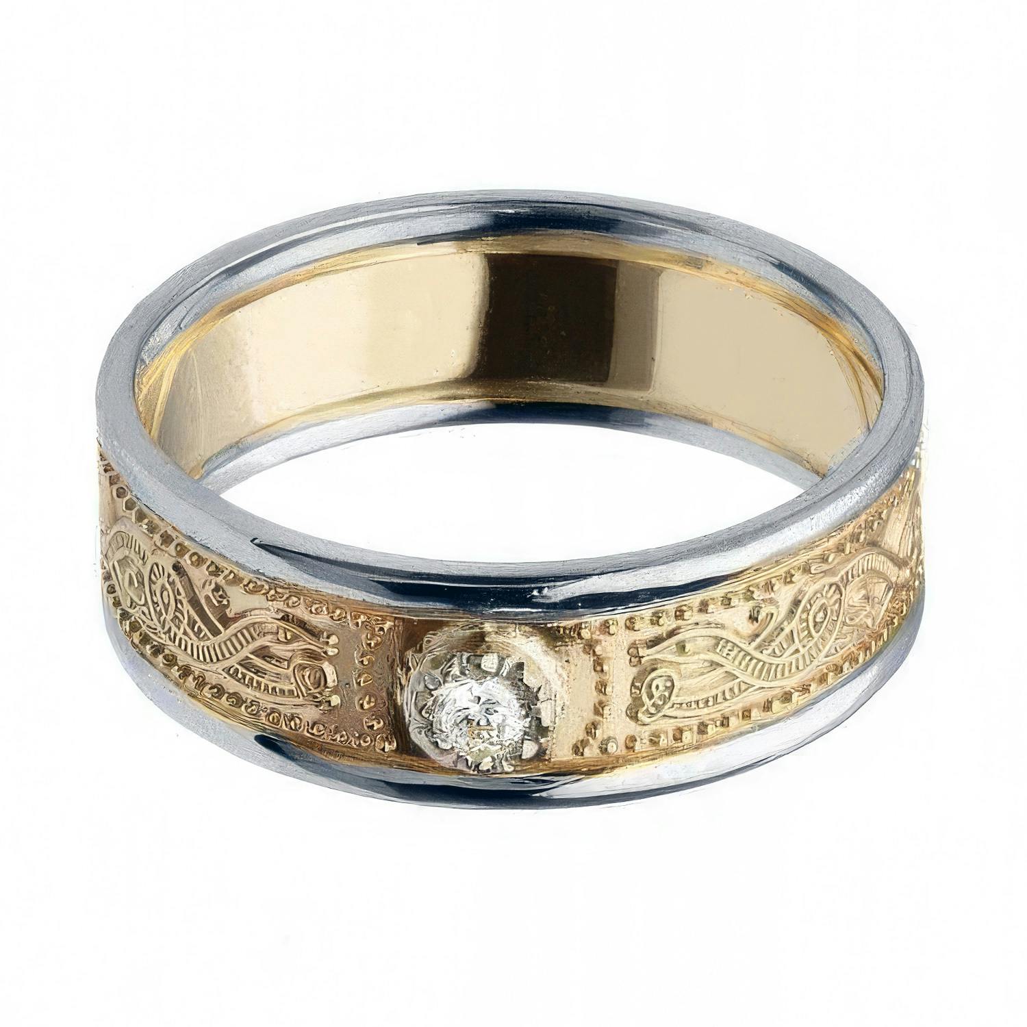 This stunning Celtic Warrior ring is set with a fabulous diamond encrusted into one the shields. It is perhaps one of the most striking examples from our Warrior Shield range. The diamond has the effect of highlighting the intricate celtic knot pattern and shields.The wide trims are a delightful addition also.
