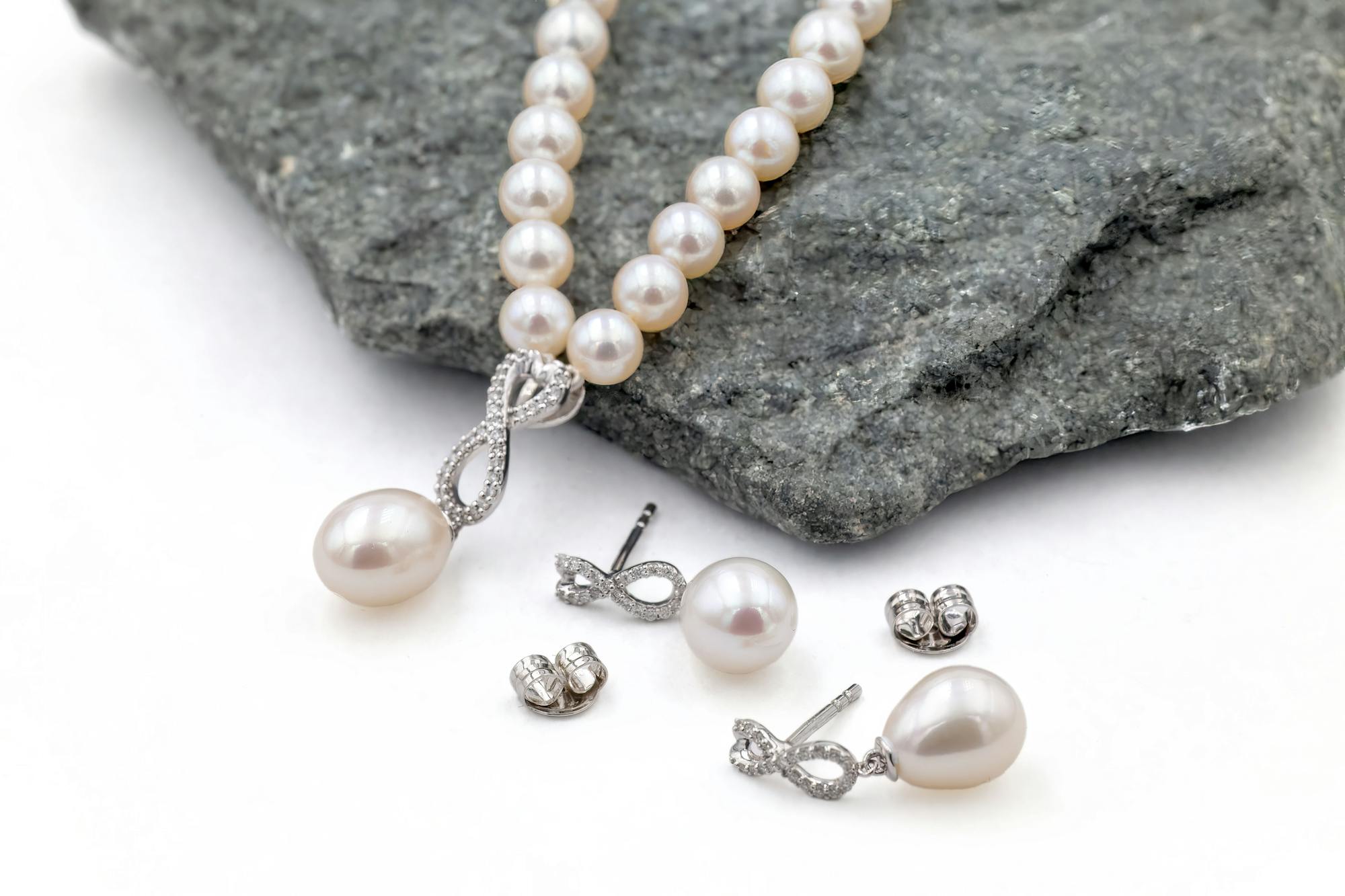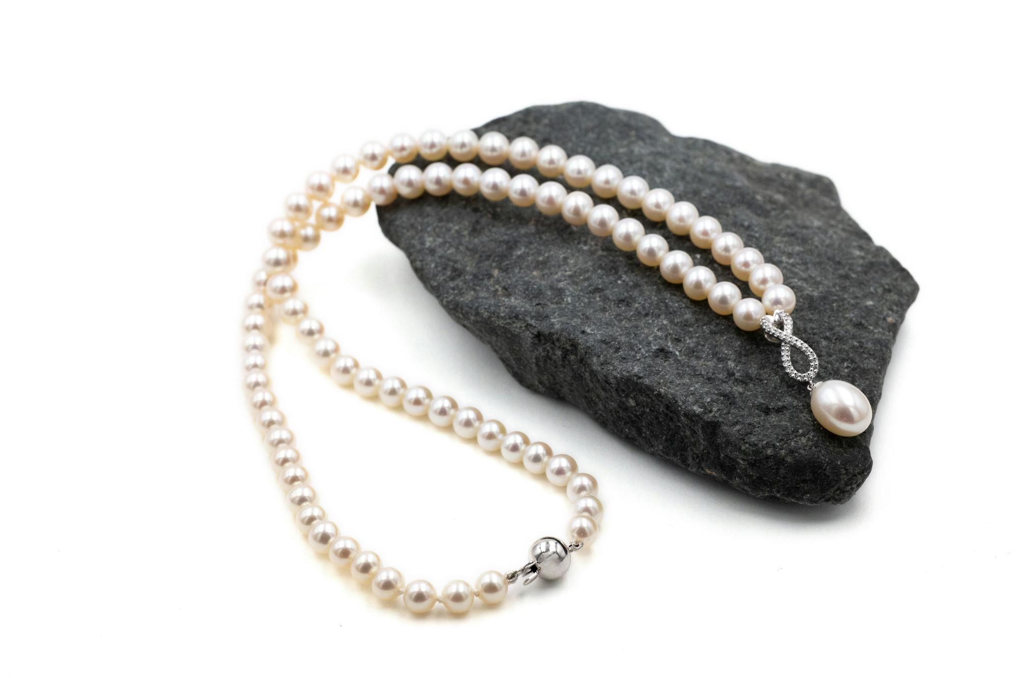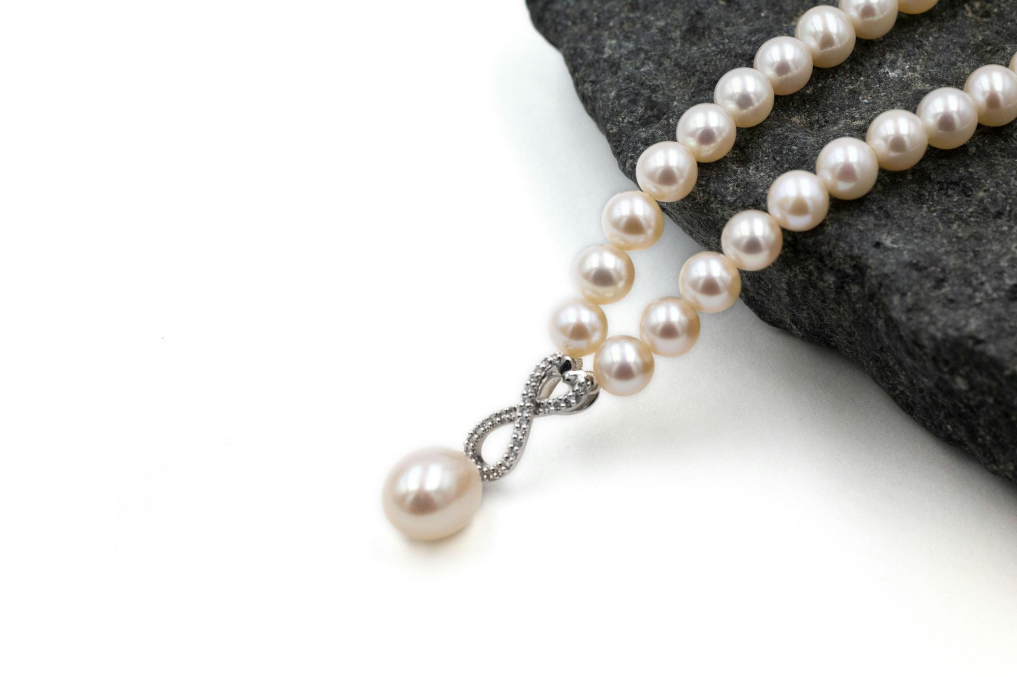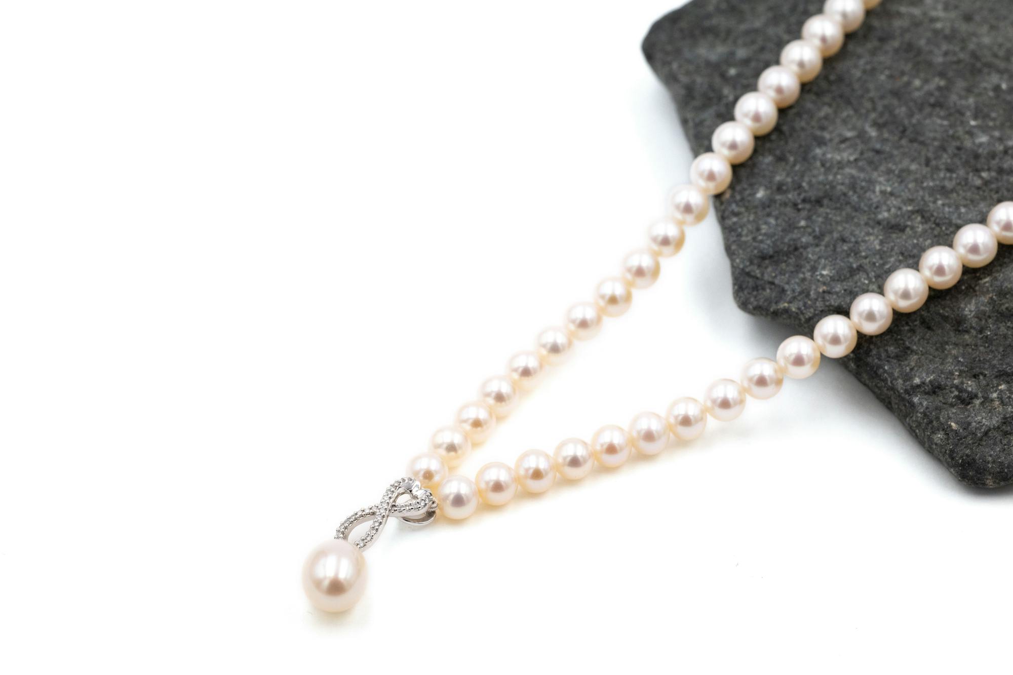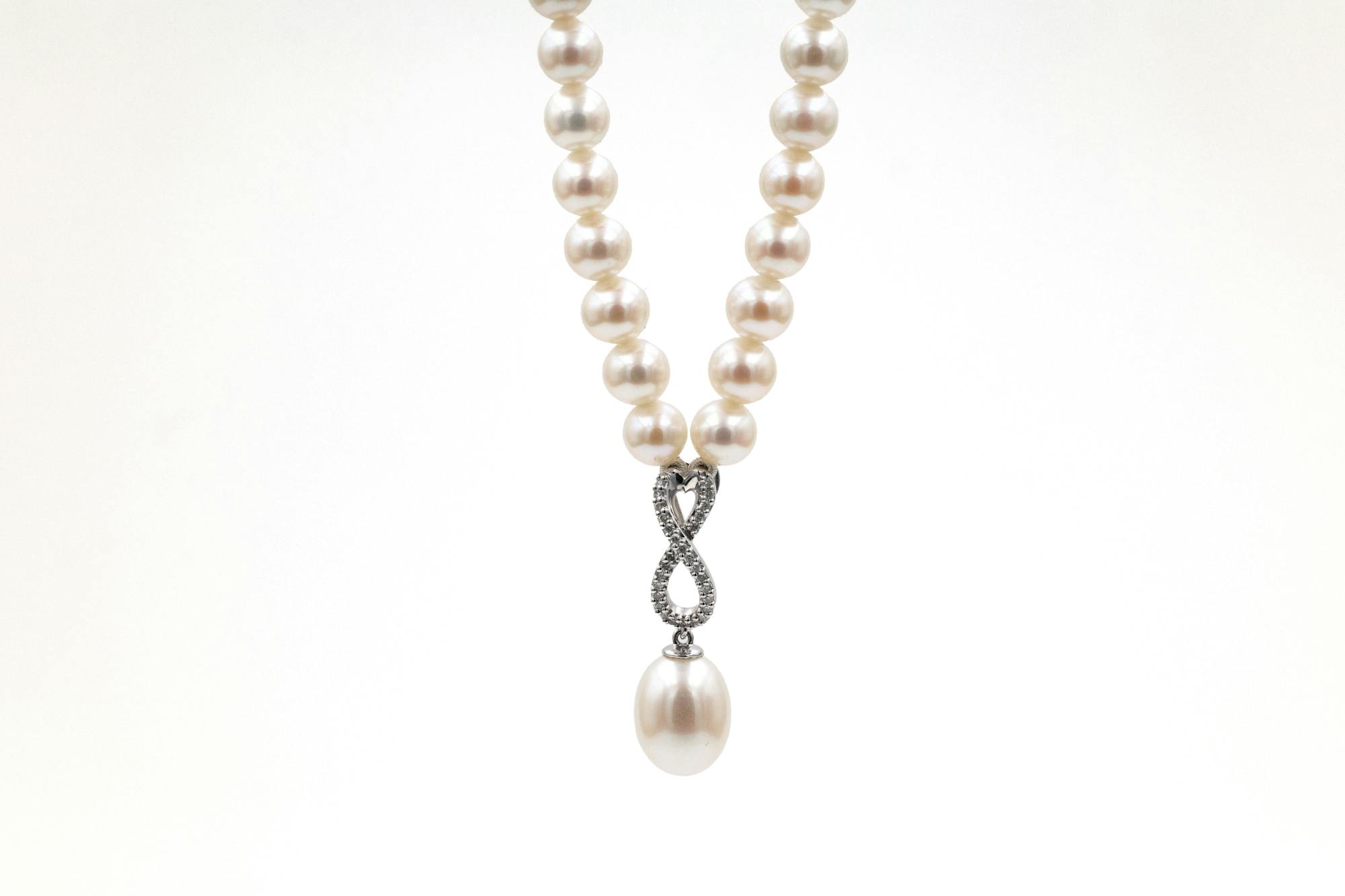 Diamond Infinity Knot Pearl Necklace