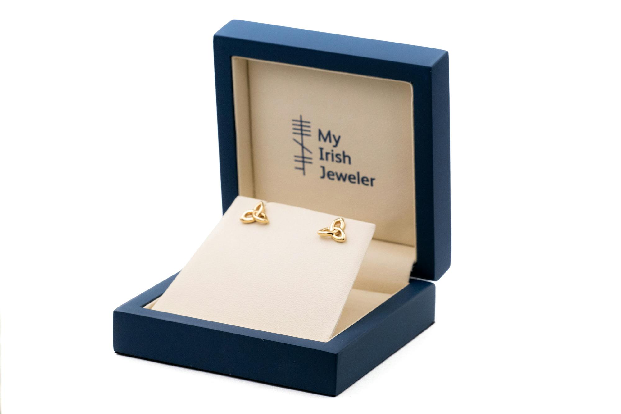 Timeless and elegant, these 10k yellow gold Trinity Knot earrings have spectacular depth and dimension. Unbroken solid strands of gold weave over and under to form the graceful curves of each of the leaves of these Celtic love knot studs. A symbol of eternity, love and connection for many. These refined and versatile earrings are incredibly wearable - the perfect addition to any look.