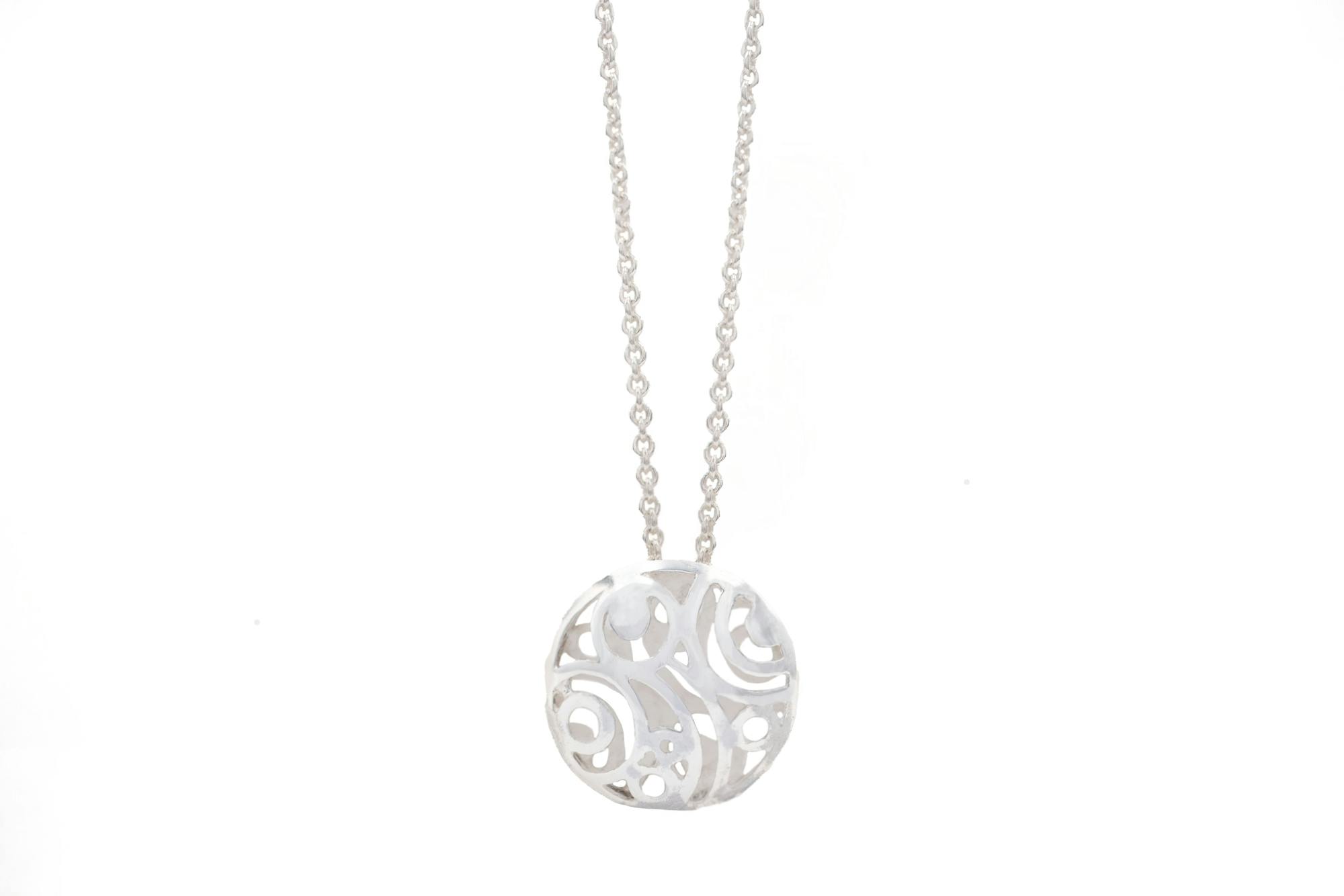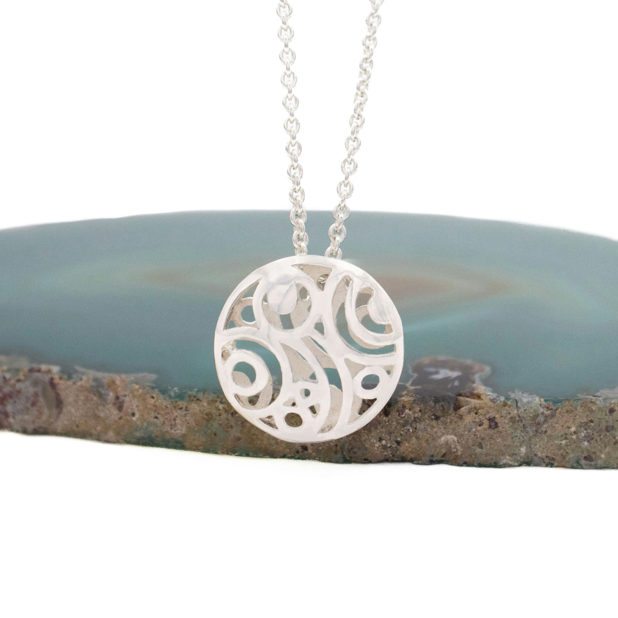 Inspired by this landscape, Miriam Wade, an award-winning Irish goldsmith and designer from Co. Westmeath, has combined overlapping simple yet modern circular forms to create a timeless and elegant necklace, with lovely depth and dimension. The perfect necklace for any occasion, that celebrates a genuine connection to Ireland.