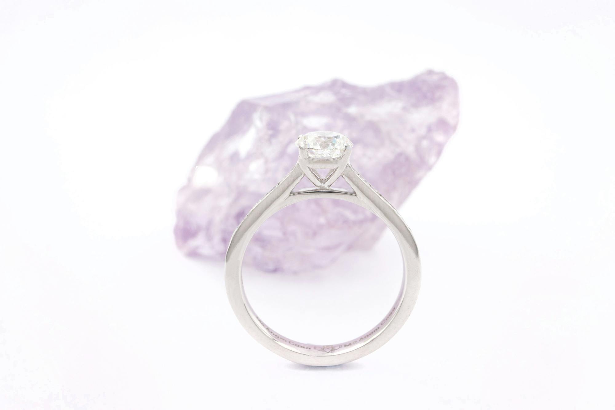 This ring is hallmarked to assure premium 18K white gold, and the lab diamond is quality certified with a full IGI report. You can rest assured that your ring is made with the finest materials, craft, and care befitting such a momentous purchase - a beautiful heirloom for you to treasure forever.