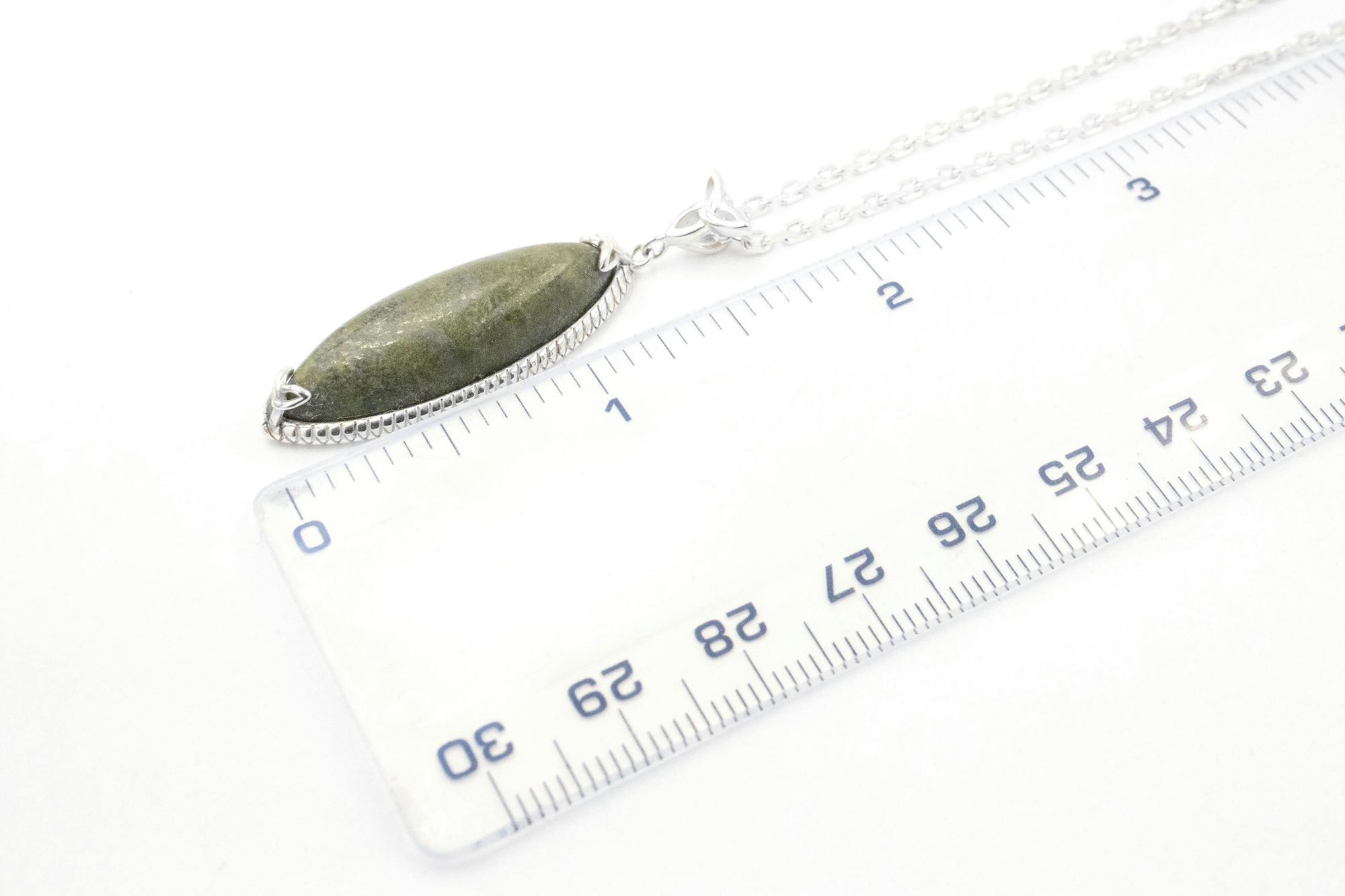 The elegant and elongated marquis shape of this necklace is prized for its flattering form. Measuring 0.45" wide by 1.7" long including a decorative Trinity Knot bale, this necklace sits beautifully on the neckline on an 18" sterling silver chain.
