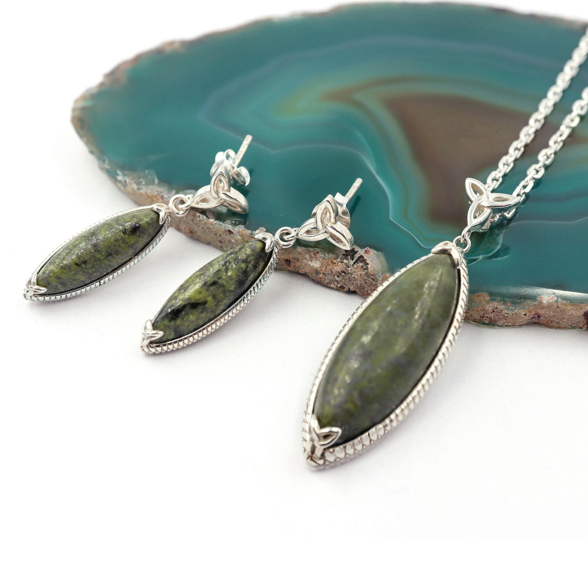 Marquise Connemara Marble Trinity knot Necklace and Drop Earring Set