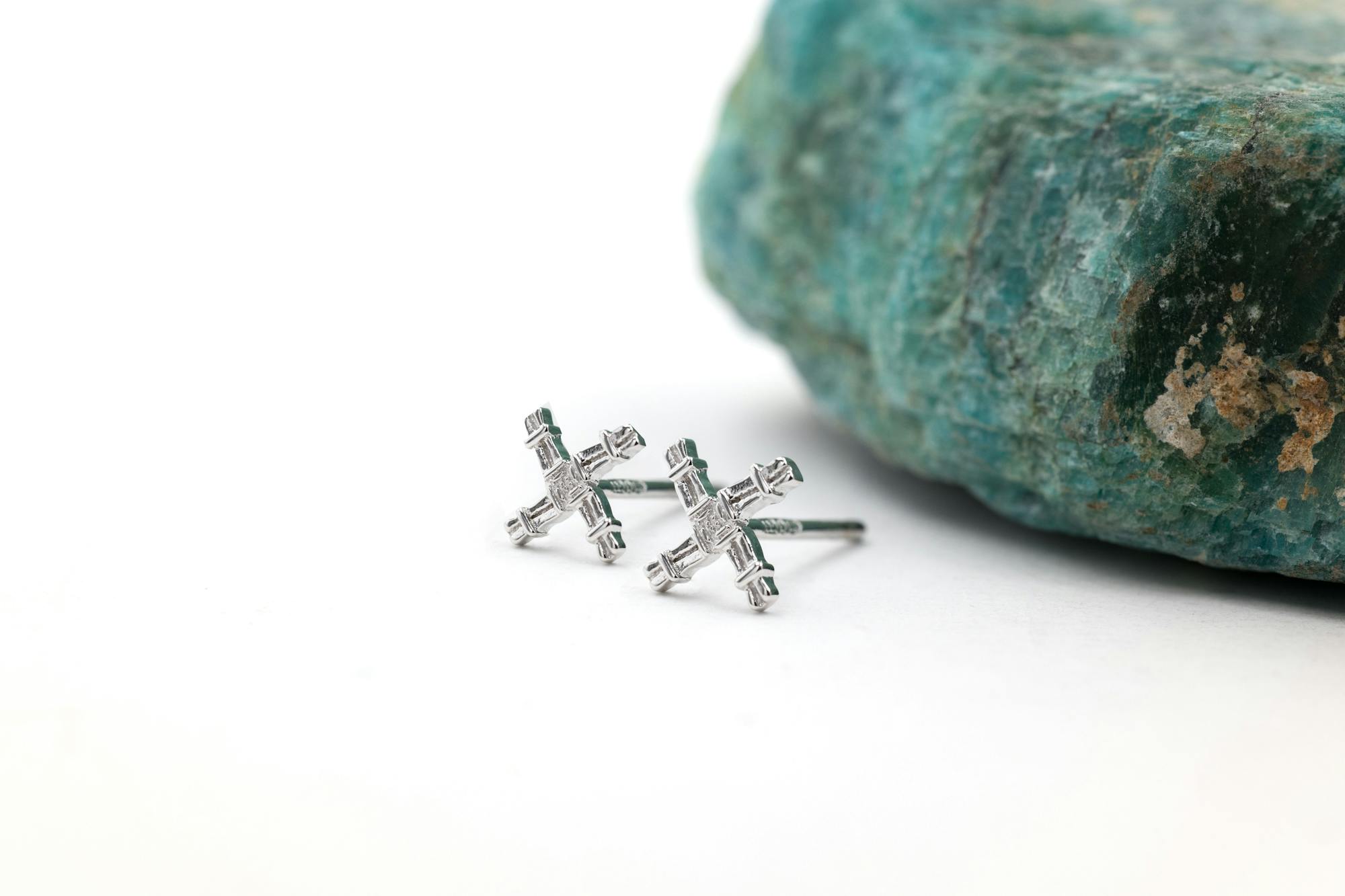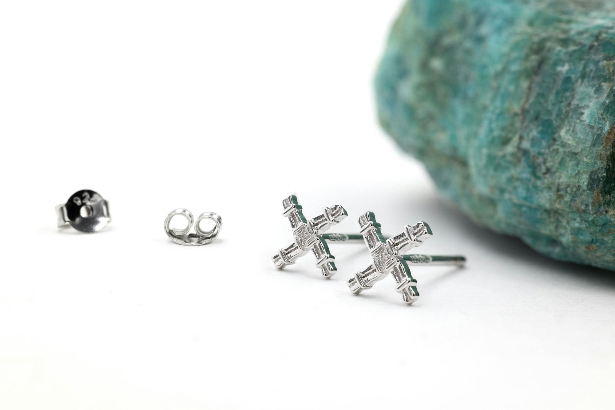 Faithful to the form of a traditional reed cross, with a textured, handmade feel, these wearable and elegant stud earrings have been carefully crafted in fine sterling silver.