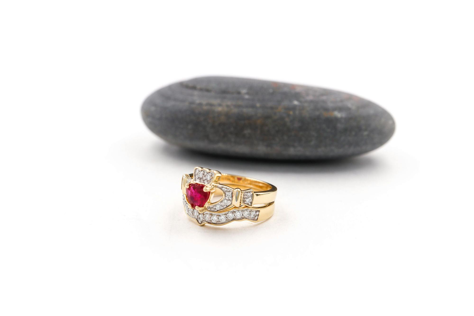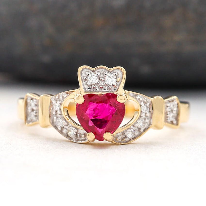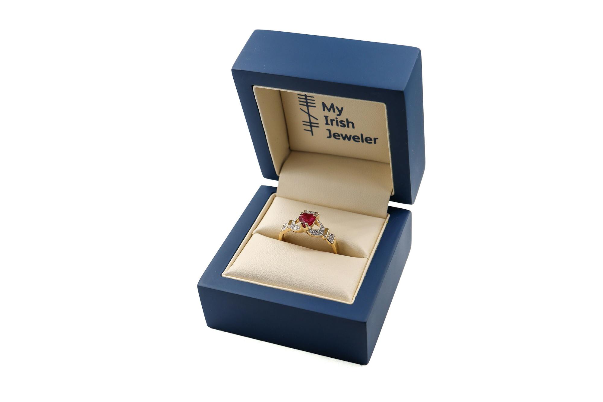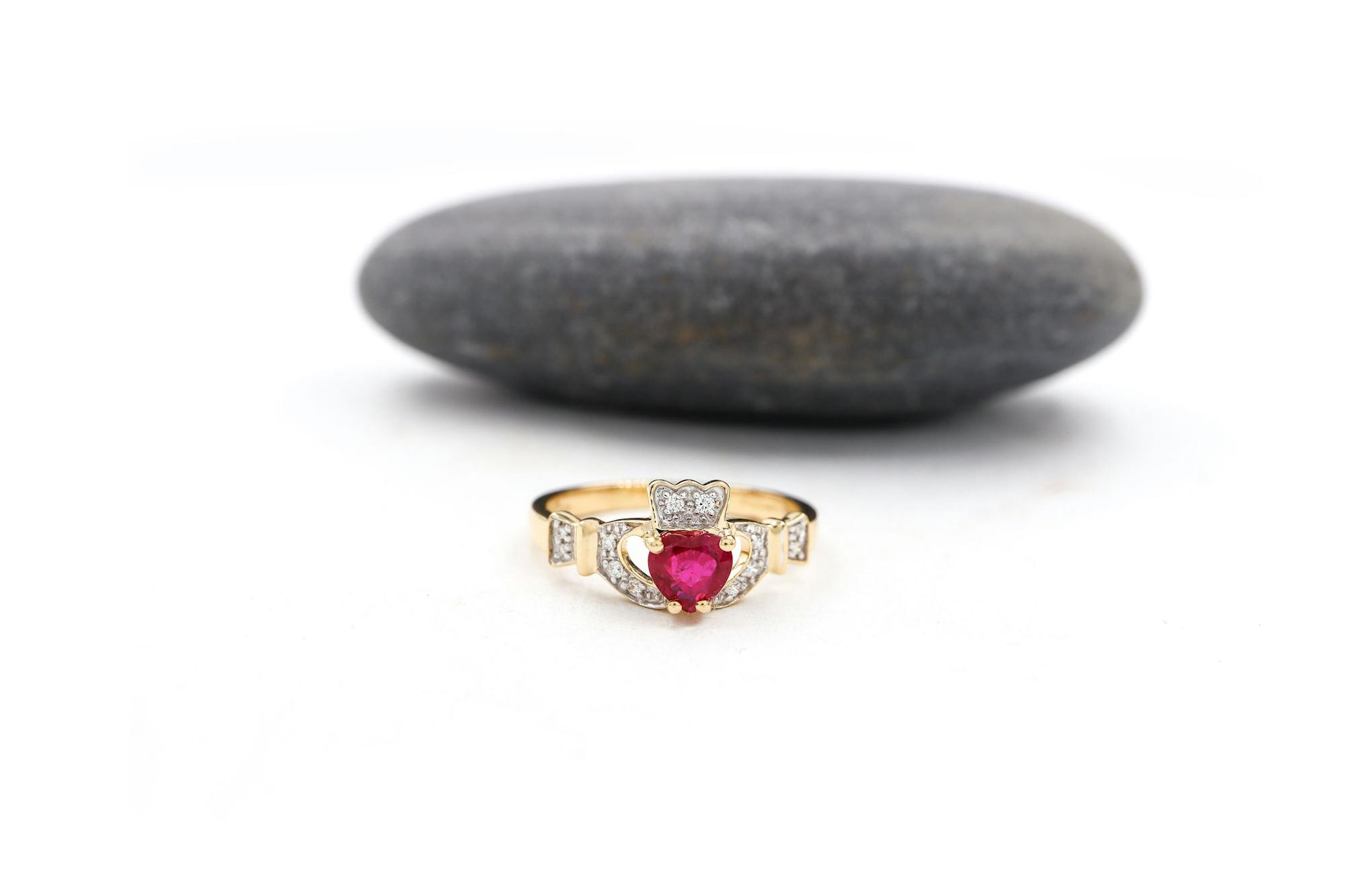 Synonymous with love and passion, precious ruby is also the birthstone for lucky July babies and traditional 40th wedding anniversary gift. The perfect fit then for the heart of a Claddagh, itself an enduring Irish symbol of love, loyalty, and friendship.