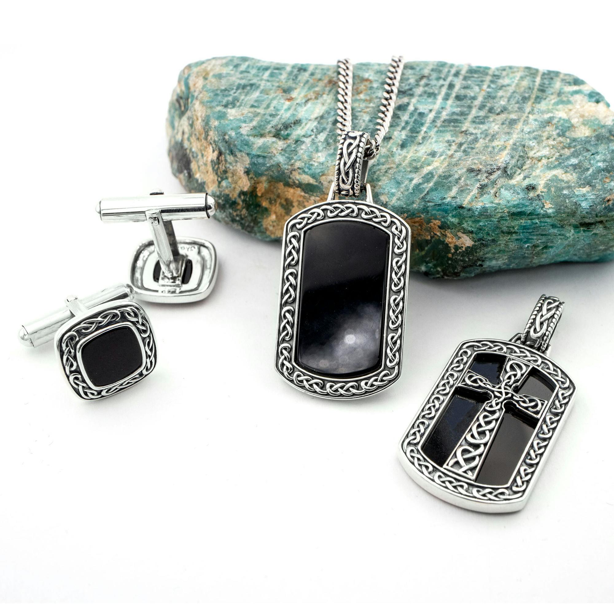 Love the look? Why not complete the set our matching cufflinks? Or if you prefer a pop of colour try our celtic dog tag set with vibrant blue lapis lazuli