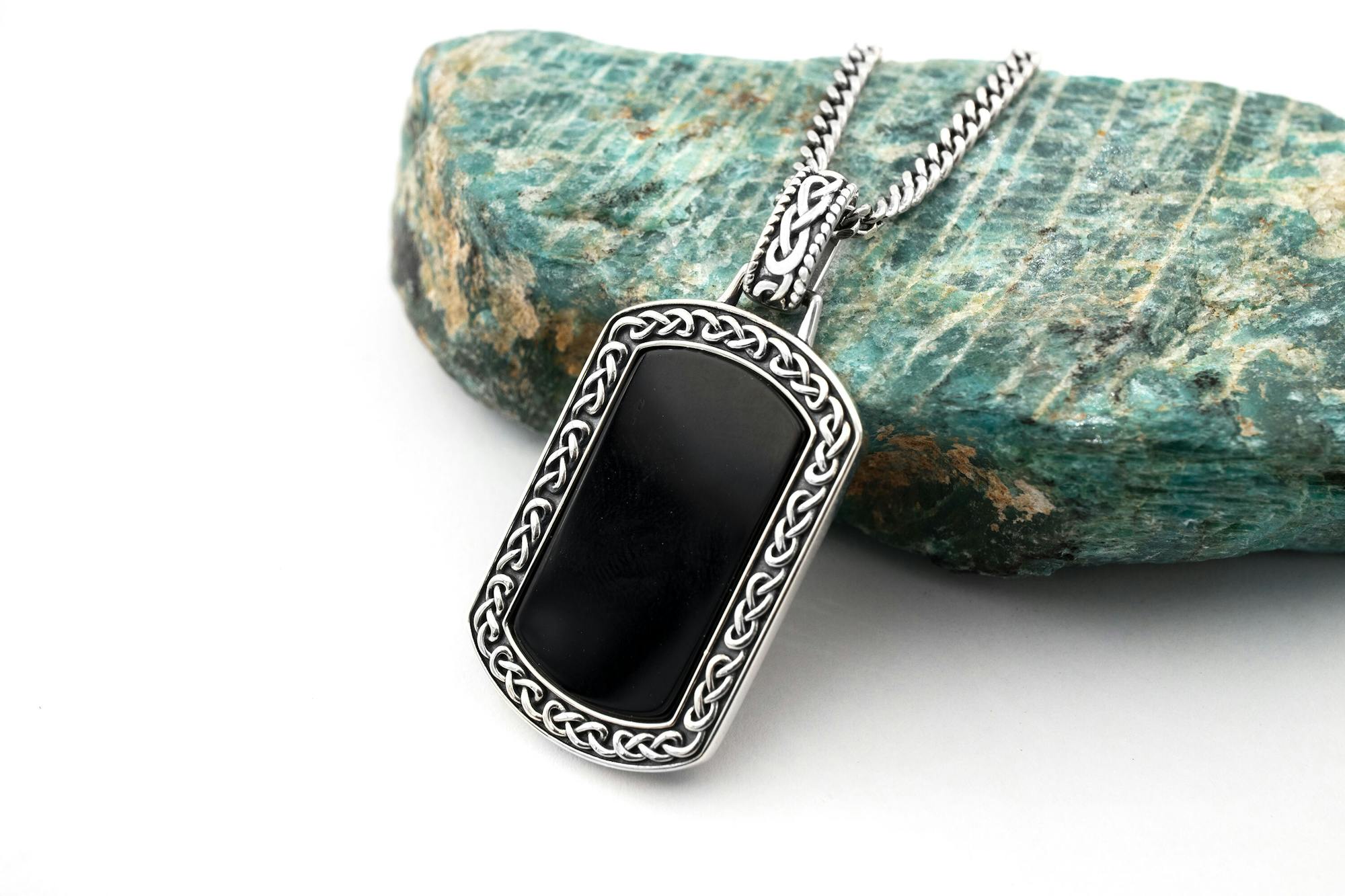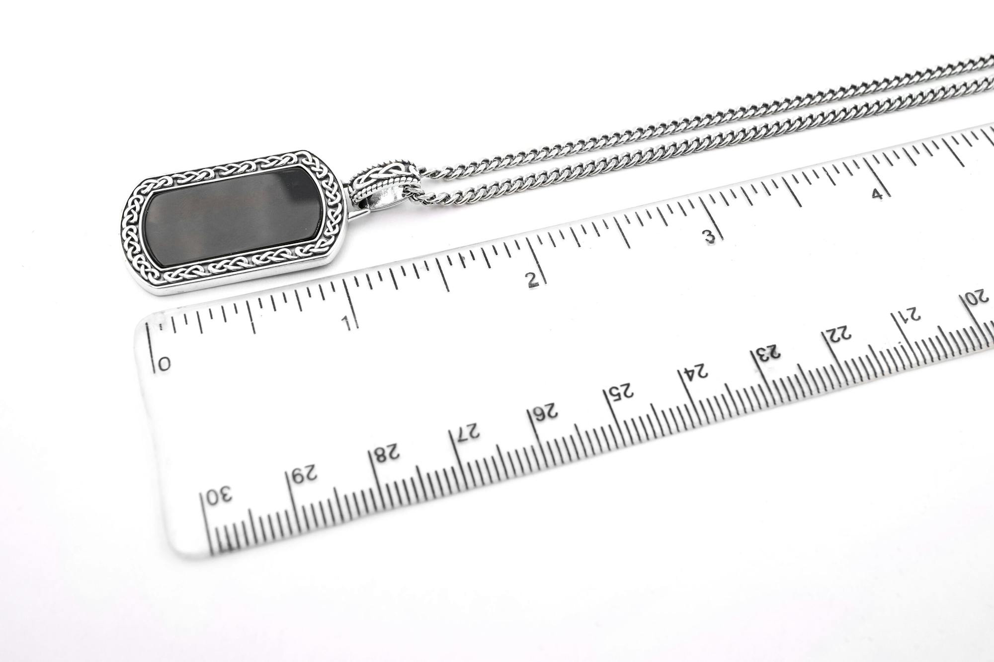 Rugged and robust with an heirloom weight, wear this sturdy dog tag with confidence knowing the onyx is securely set in handsome sterling silver. This fine sterling silver is hallmarked here in Ireland at historic Dublin Castle attesting to the top quality of materials. Rest assured your necklace has been crafted with the highest standard of materials and care.