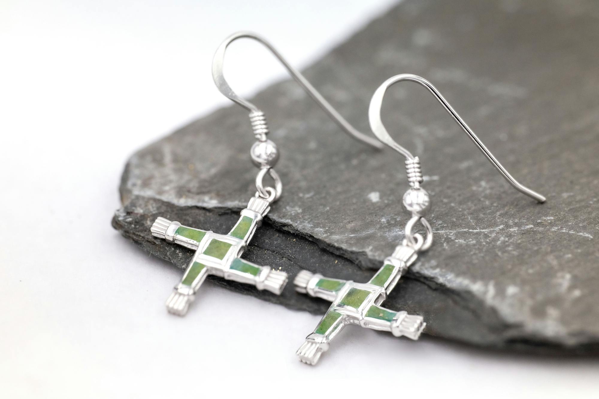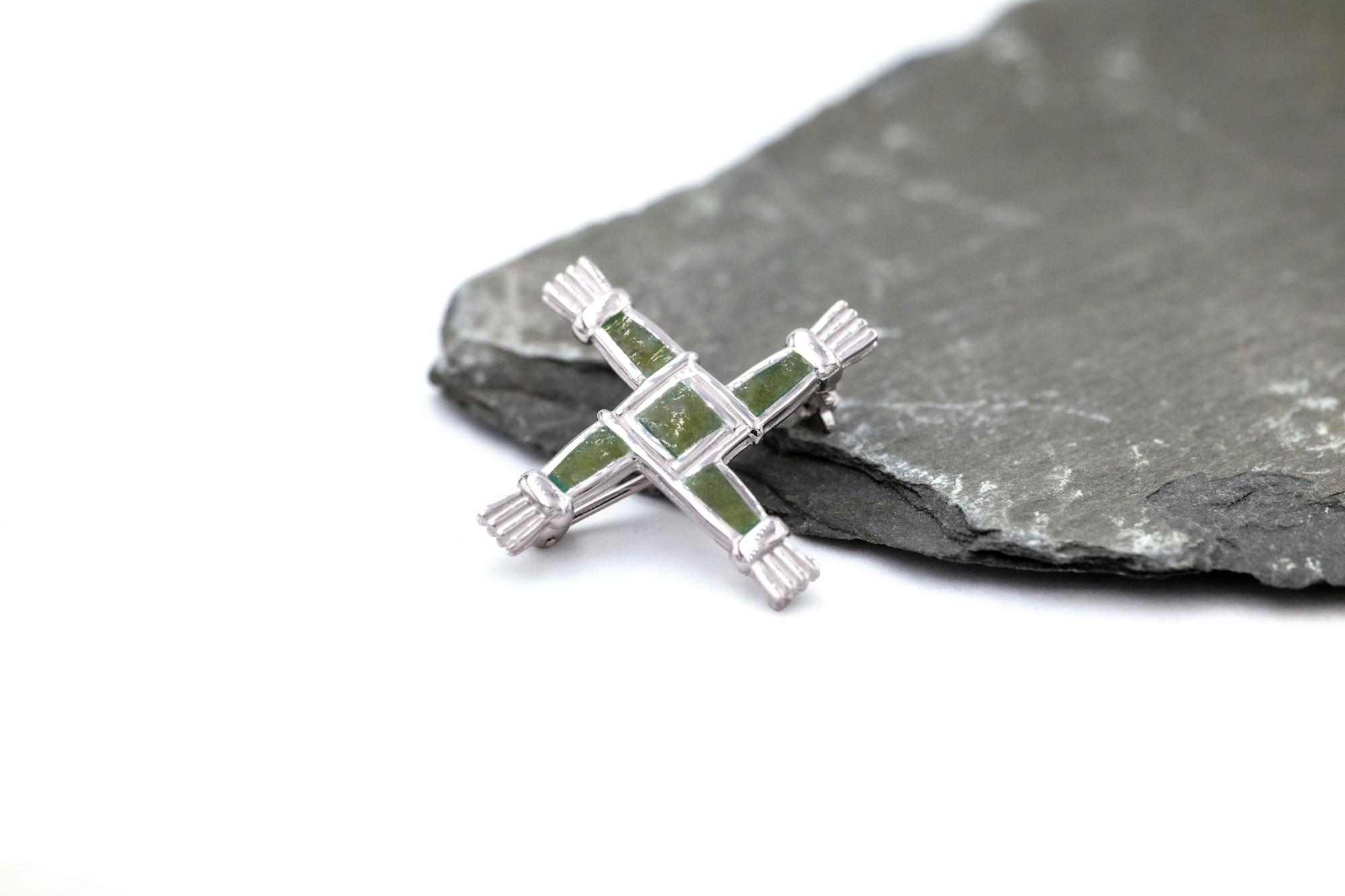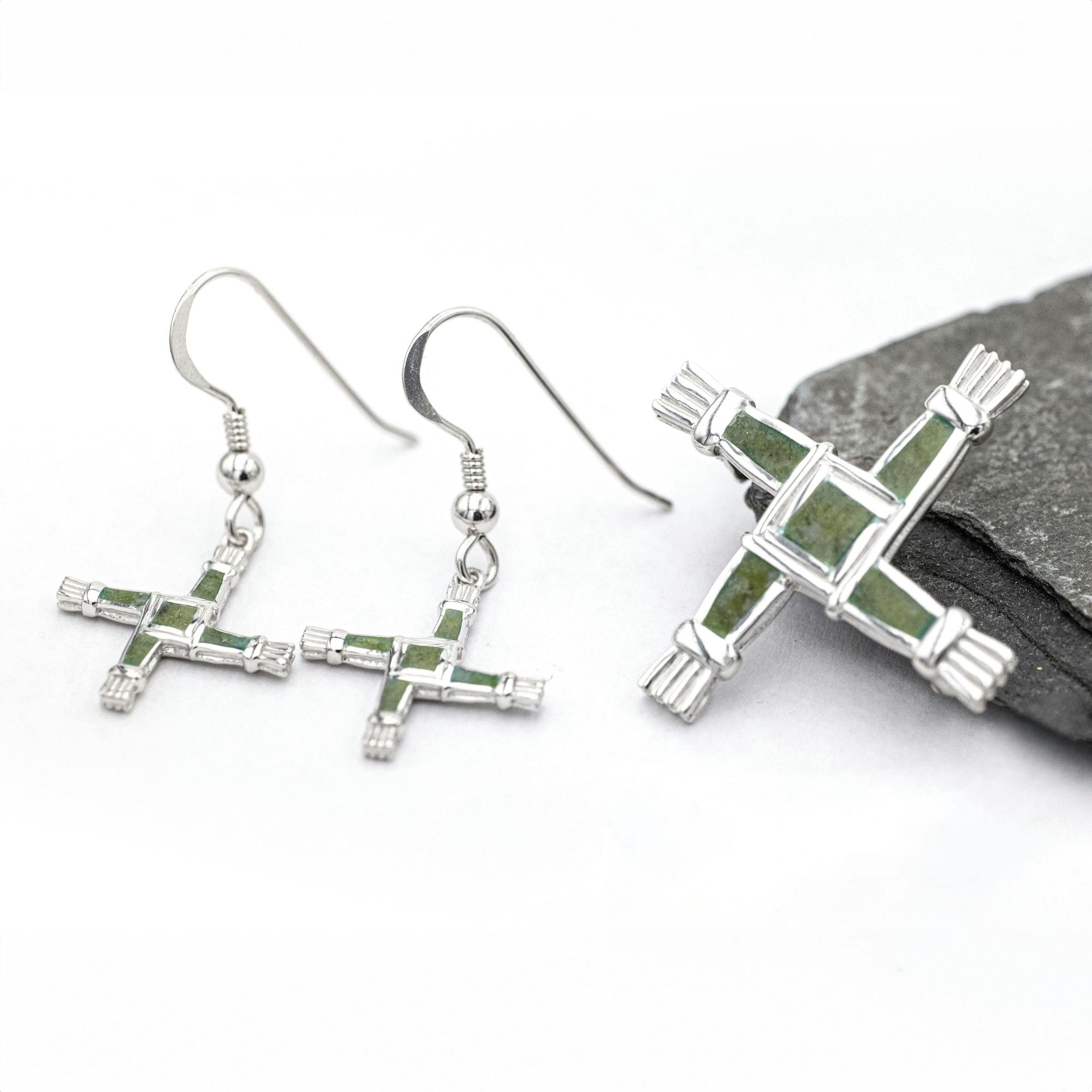 Faithful to the form of a traditional rush cross, with a textured feel, these striking matching pieces have been carefully crafted in solid sterling silver and set with iconic Irish Connemara marble. The instantly recognisable cross is an ancient design that traces its roots back hundreds of years to Ireland’s female patron saint, and beyond to the Celts and the goddess Brigid.