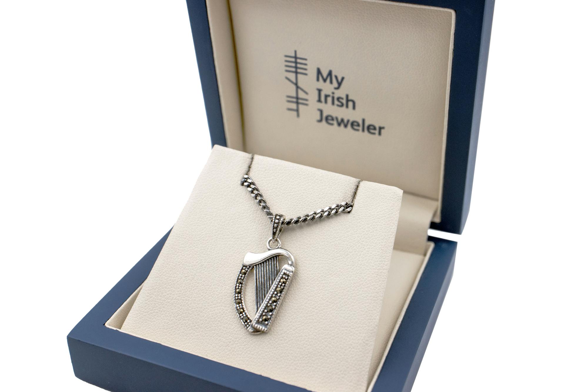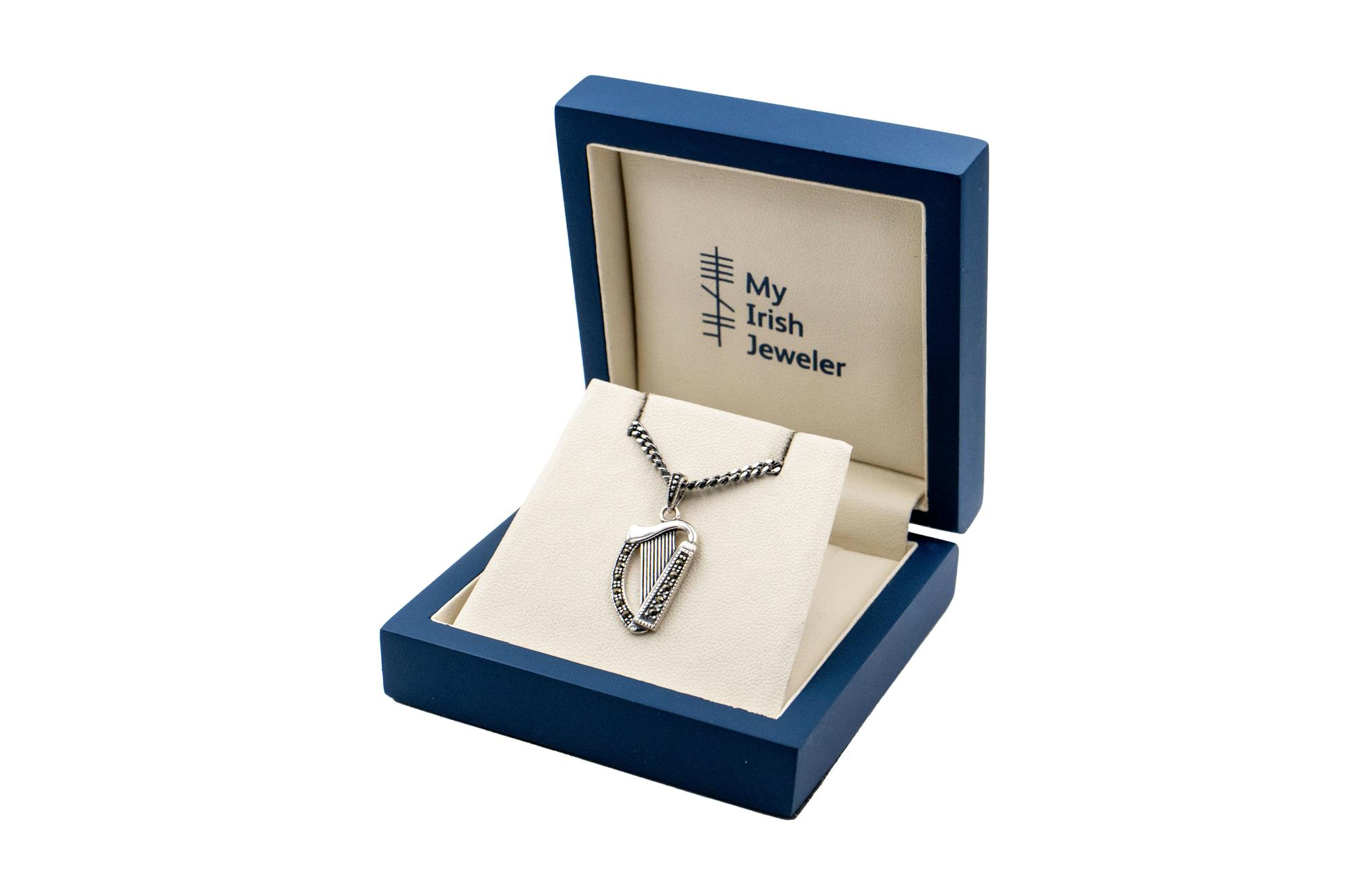 The lovely form of the necklace draws on the Irish harp, an instrument treasured in Ireland for over 1000 years. The harp is the official national symbol of Ireland and is instantly recognized the world over.