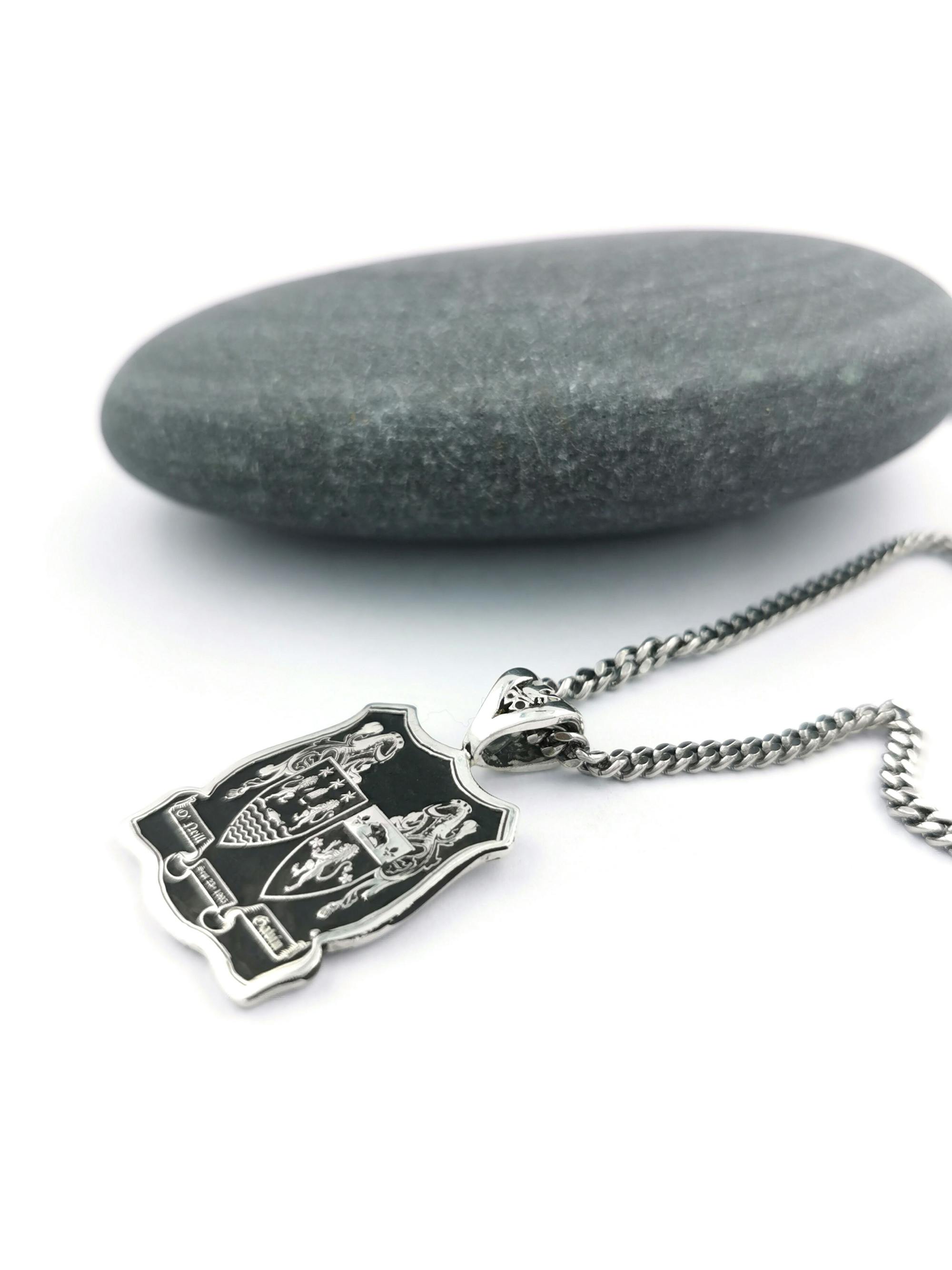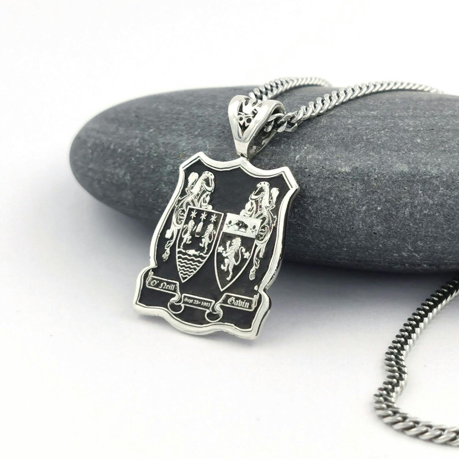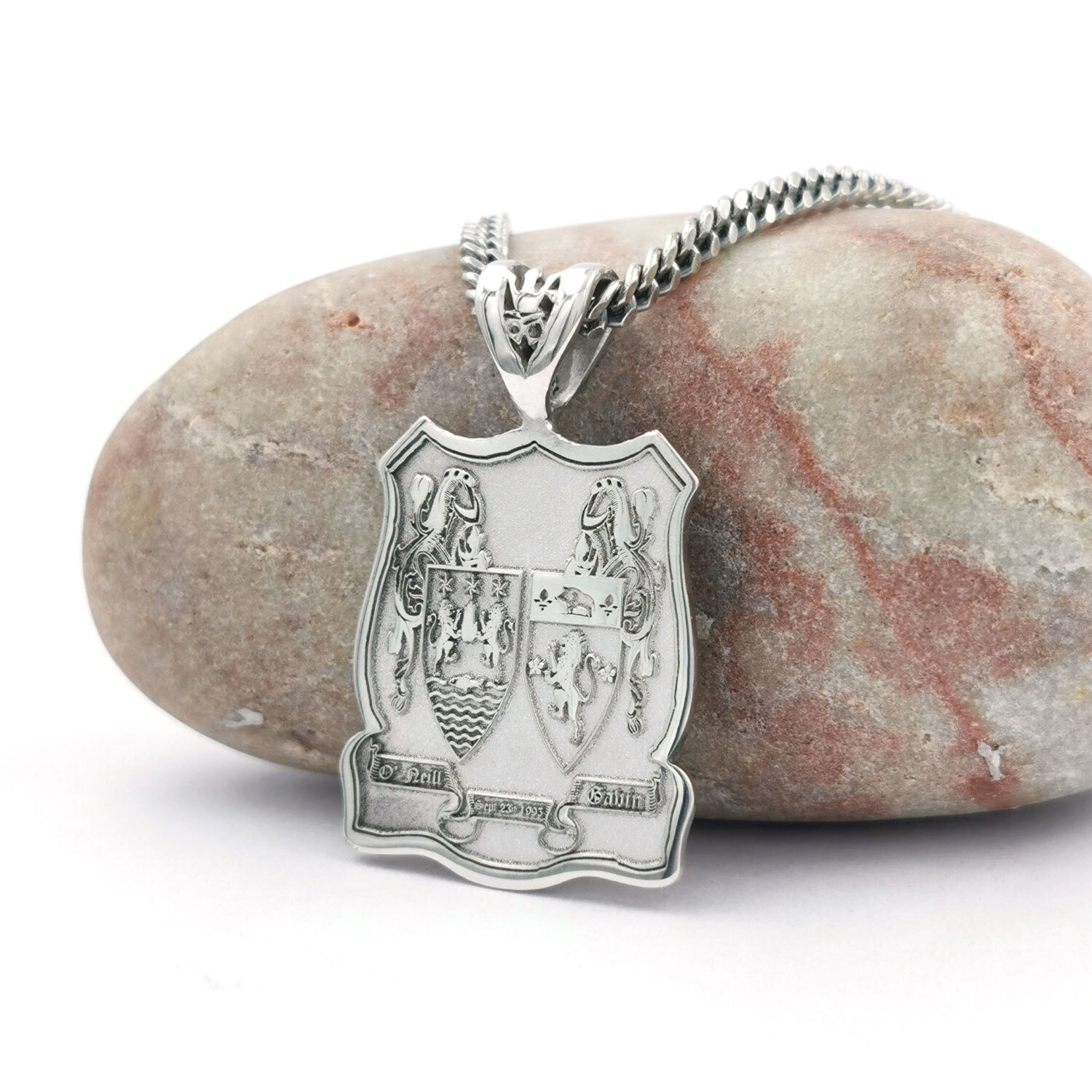 Celebrate the joining of two families with this fabulous coat of arms necklace. A magical wedding or anniversary gift to give your spouse, or future inlaw to bring two families together and to unite your treasured heritage.