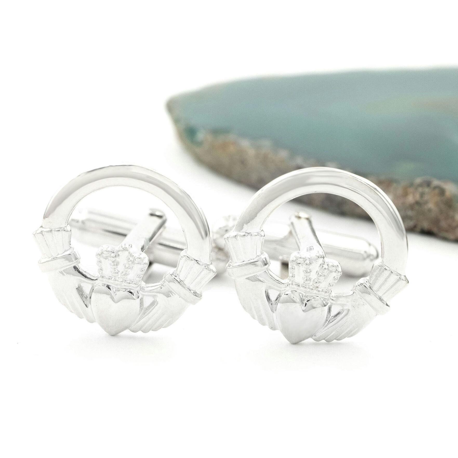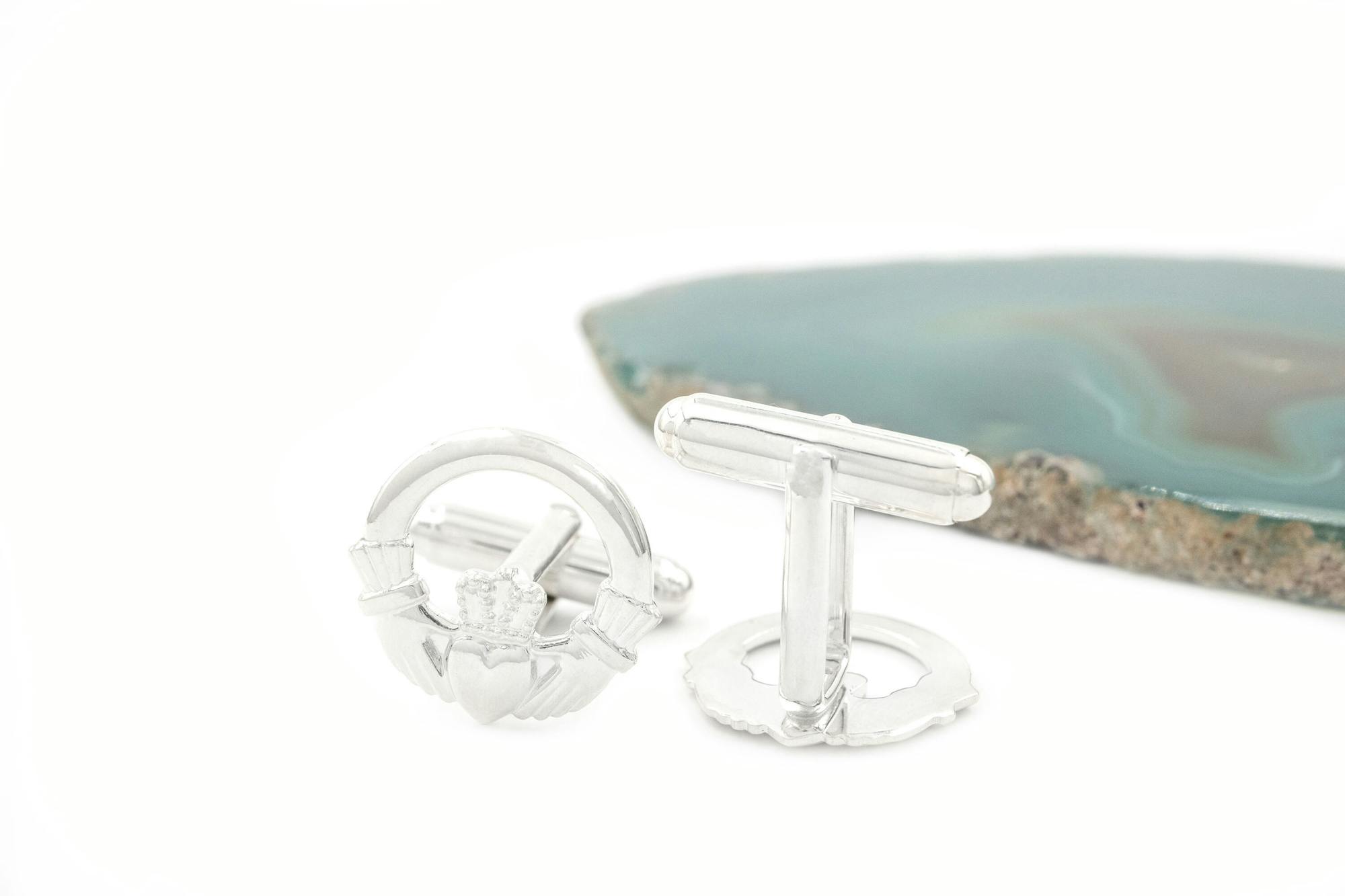 Masculine and detailed, these solid sterling silver Claddagh cufflinks feature a centuries old Irish design with sentiment that makes them a meaningful gift.