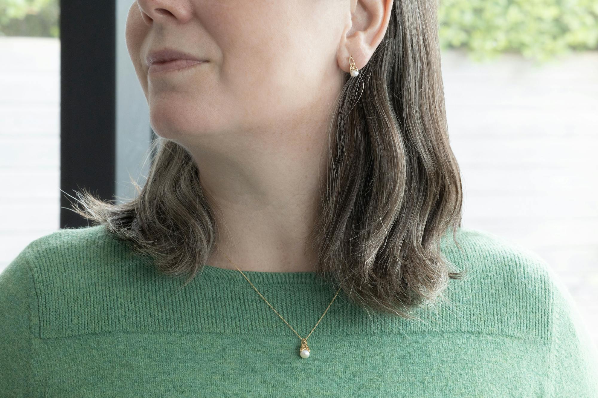 Refined and and elegant, this 10k yellow gold trinity knot gift set is accented with lustrous fresh water pearls. Every pearl is unique and individual just like you, but they all have the most beautiful lustre and sheen.