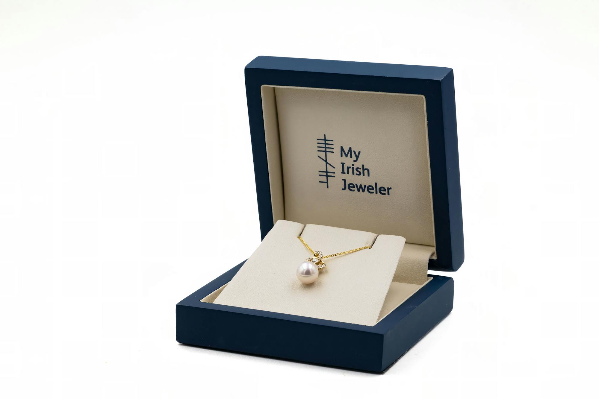 Representing eternity and eternal love, the subtle symbolism of the Trinity knot is a beautiful compliment to pearl's long association with love, purity and integrity.