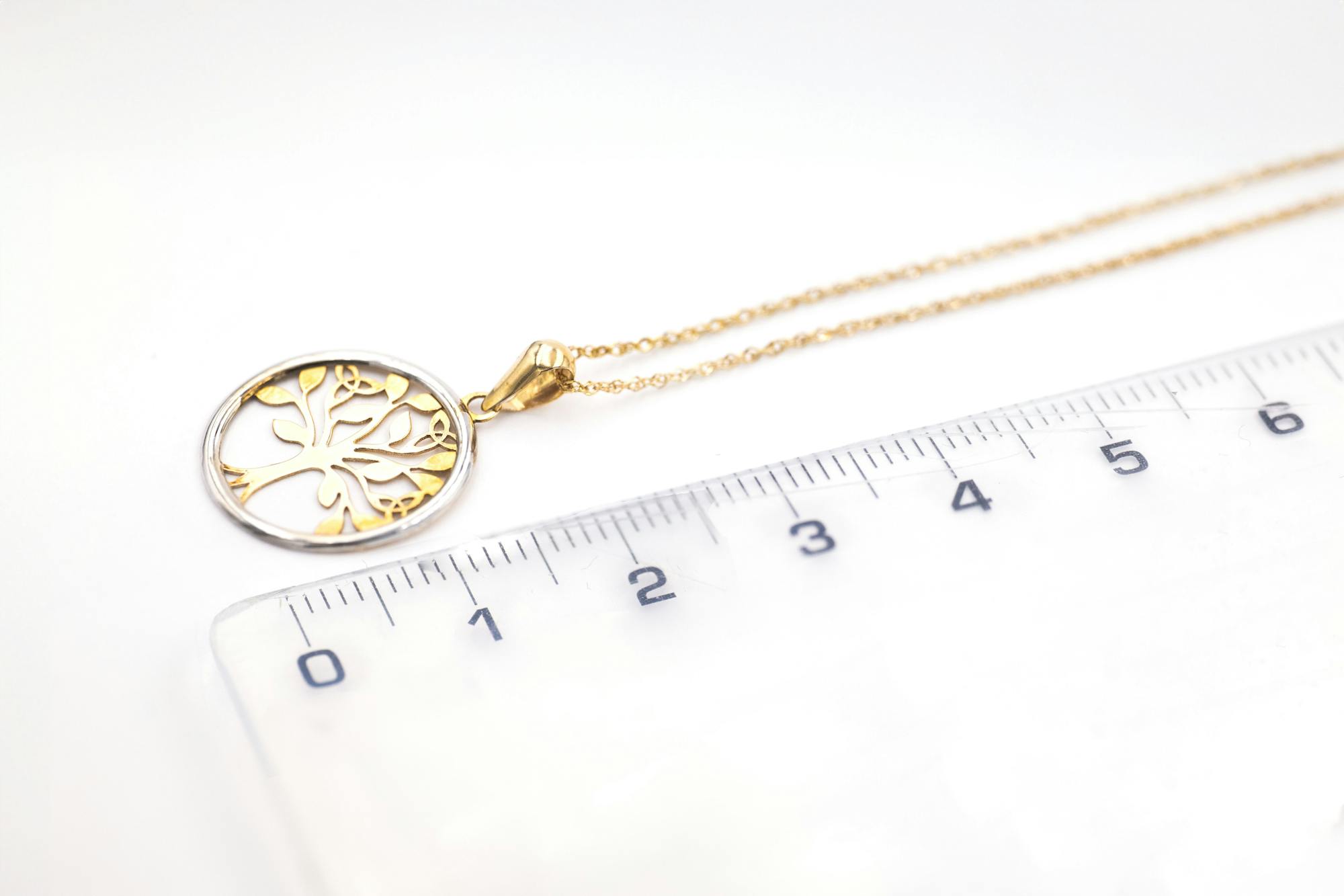 The necklace includes an 18 inch yellow gold chain. If you prefer something longer or chunkier, choose from our handpicked selection of yellow gold chains. Love the look? Why not complete the set with our matching two tone tree of life earrings?