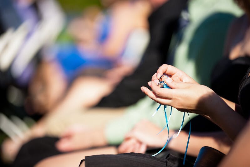 During the ceremony, the wedding rings are passed between the hands of the couple's wedding guests. Friends and family are invited to infuse these symbols with their love and blessings for the couple.