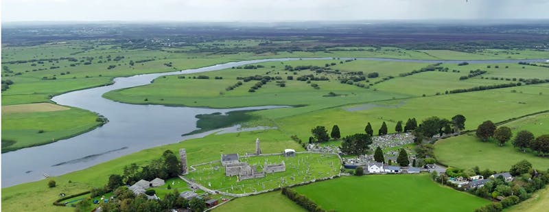 And finally, if another reason for the location was needed, it is the River Shannon itself. In the early medieval period, rivers were the major highways or motorways of their day. Used for moving people and goods. Founding a monastery on the banks of the largest river in Ireland, Ciarán was showing he didn’t just have booksmarts! With the river running North to South, intersecting with the Slí Mór running East West, Clonmacnoise was effectively at a busy medieval crossroads. So an ideal location for Ciarán’s monastery, that ensured it had every chance of growing and prospering.