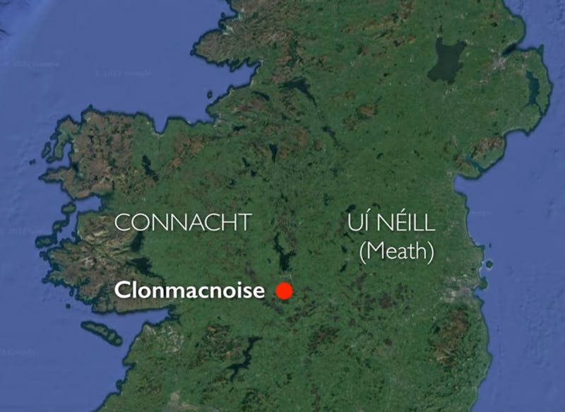 Clonmacnoise was founded between 544 and 549 by St. Ciarán, with the backing of the high king of Tara, Diarmait mac Cerbaill, at a bend in the River Shannon in what is present day Co. Offaly.