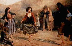 Painting by Trevor Thomas Fowler C 1835. 'Children dancing at the crossroads' in the collection at National Gallery of Ireland. Dublin, Ireland.