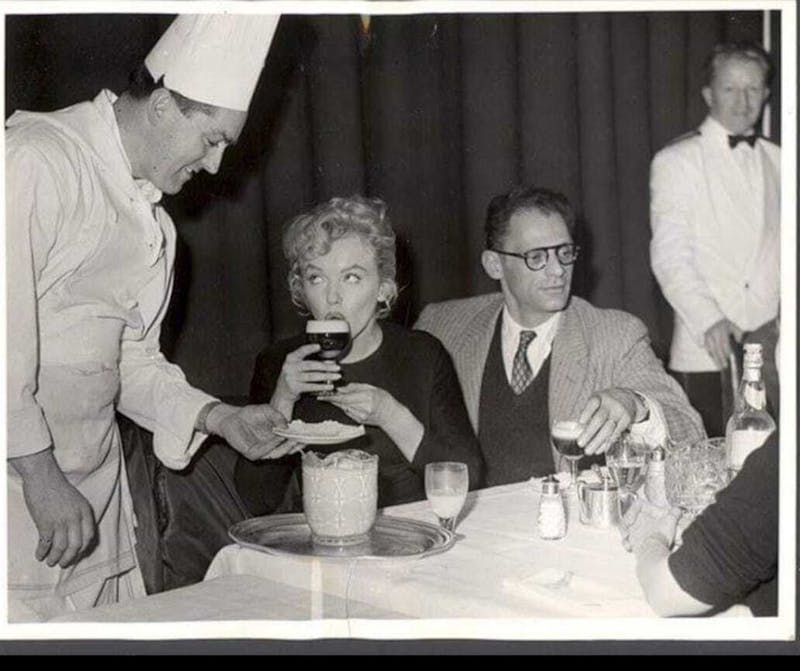Marilyn Monroe and Arthur Millar enjoy an Irish Coffee at Shannon Airport in 1956 while chef William Ryan and waiter Paddy Harty look on.
