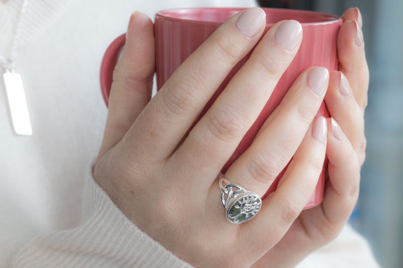 Considering one of our beautiful Celtic Rings but not sure of her ring size? We offer a complimentary ring sizer to be sure of the perfect fit. While we always prefer to work with the actual size when ordering, there are several sneaky ways to get an estimation of their ring size which some of our customers have tried!