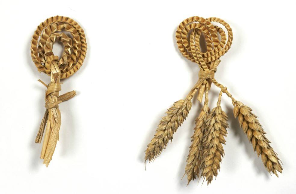 A pair of harvest “love” knots given to love interests or lovers at Lúnasa festivals. Image from National Museum of Ireland.