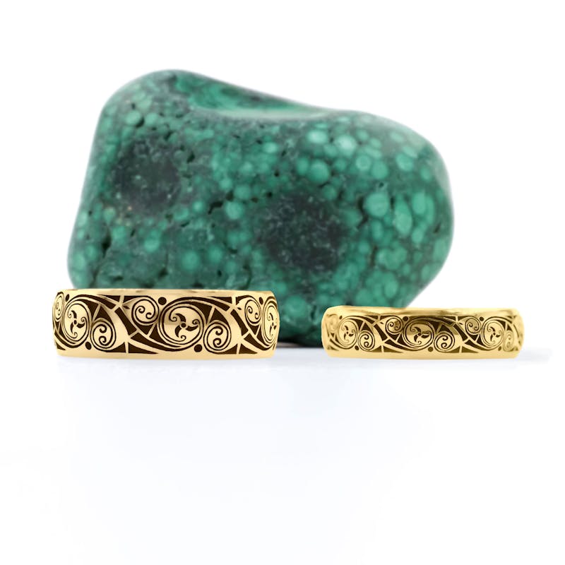 So it is no wonder then that the stunning spiral designs and knot work of this ancient work translate so beautifully to the gold, sterling silver, and platinum in our carefully crafted rings and jewelry. Wearing one of our Book of Kells pieces or a triskele ring offers a real connection to a long-standing tradition of Celtic artistry and Irish heritage.