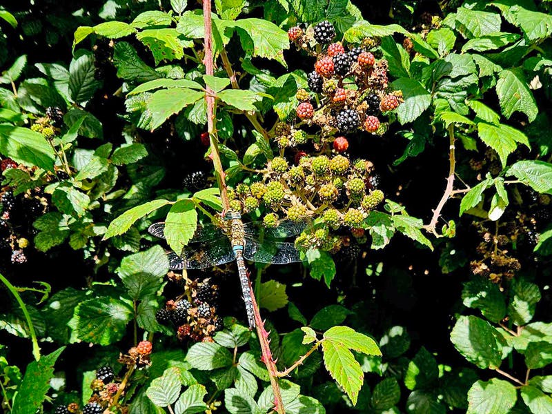 We spotted all manner of birds and butterflies out picking last week. My kids were delighted with this Hawker Dragonfly. It had no interest in the tasty berries of course but the thorny canes did give it a safe spot to rest in the sun!