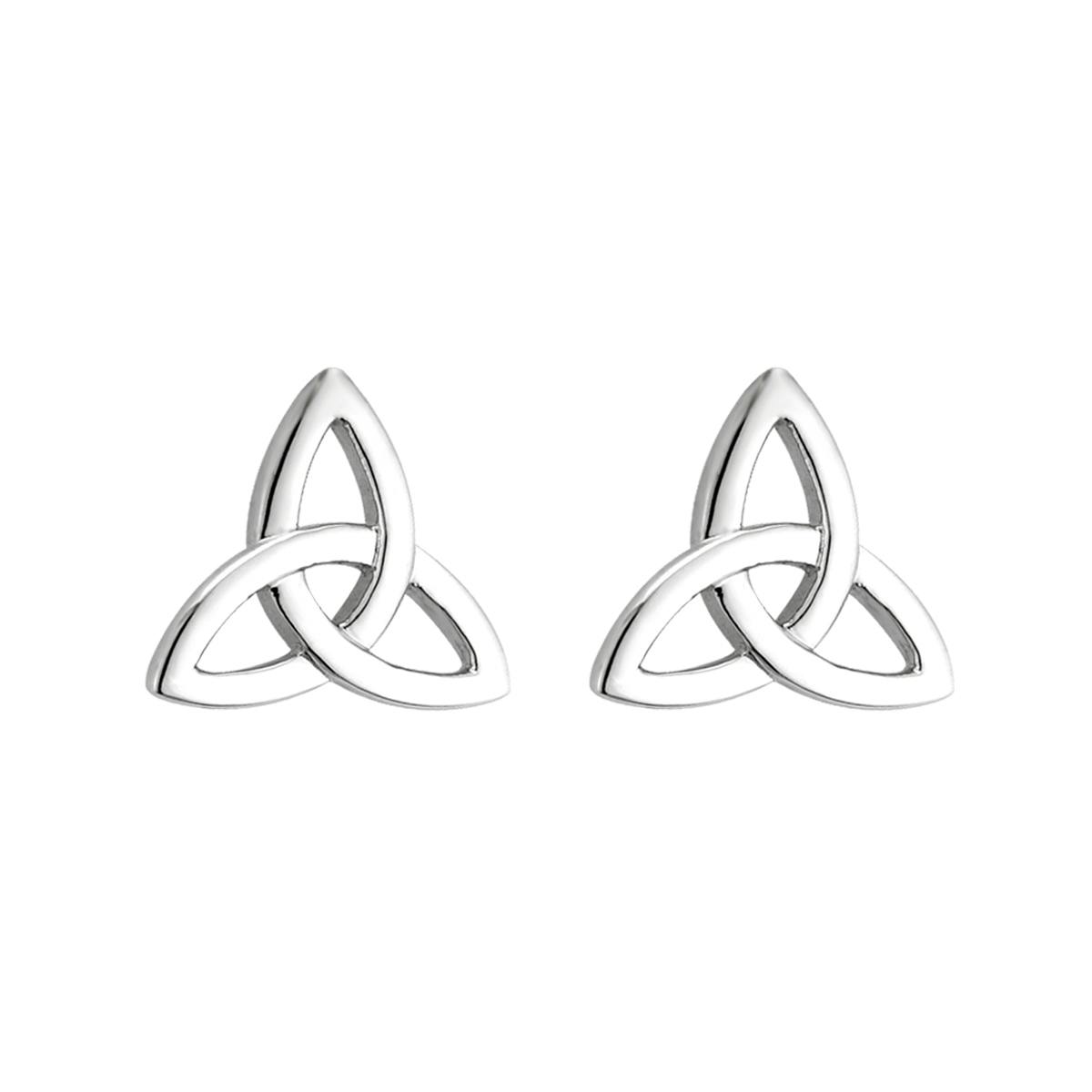14k white gold trinity knot stud earrings. The knots have soft graceful curves and fine delicate tips. Effortlessly elegant and chic. The trinity knot emblem is an iconic motif recognized the world over.