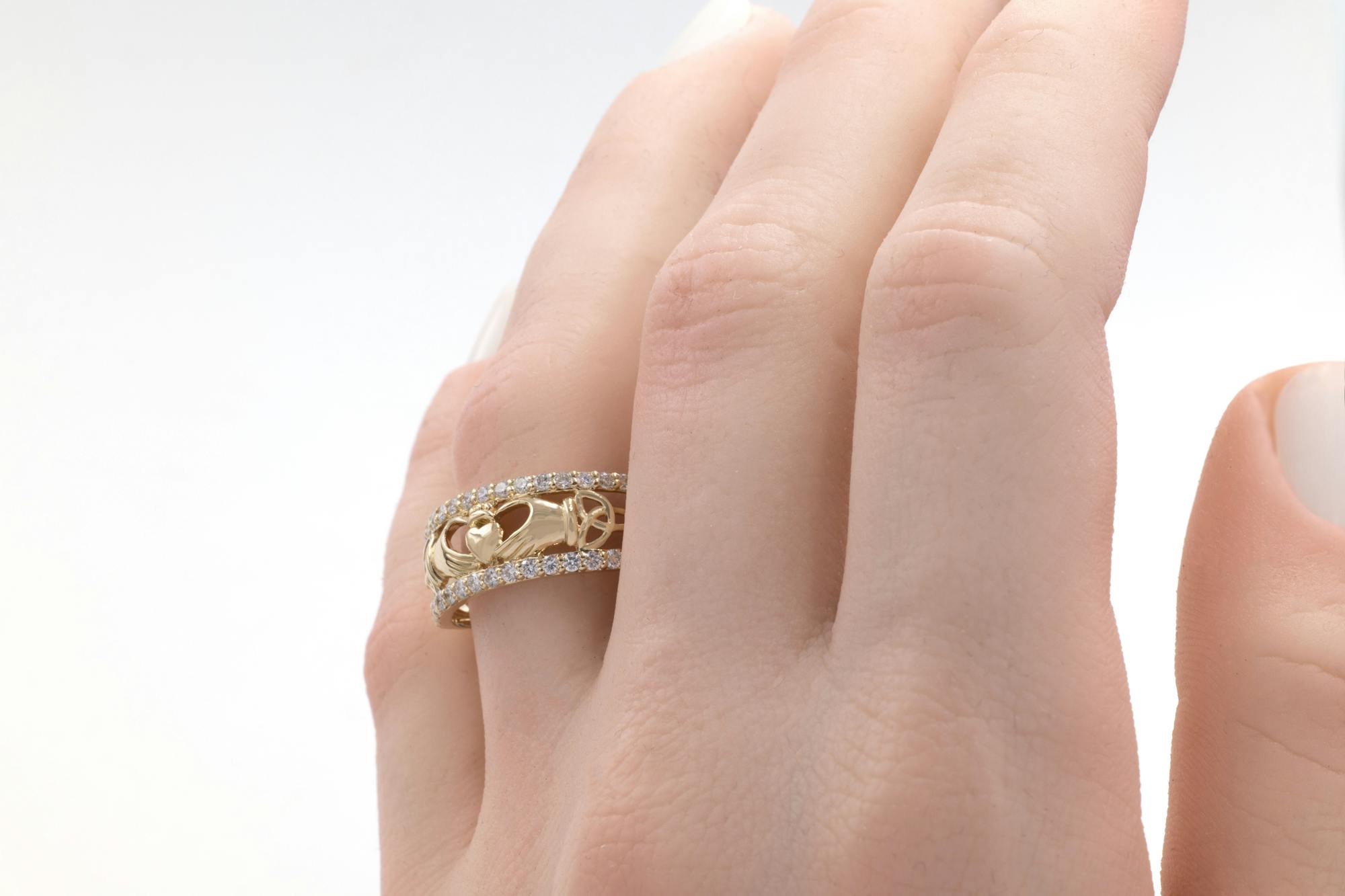 This Claddagh Trinity Pave Ring is suitable for the following rings.