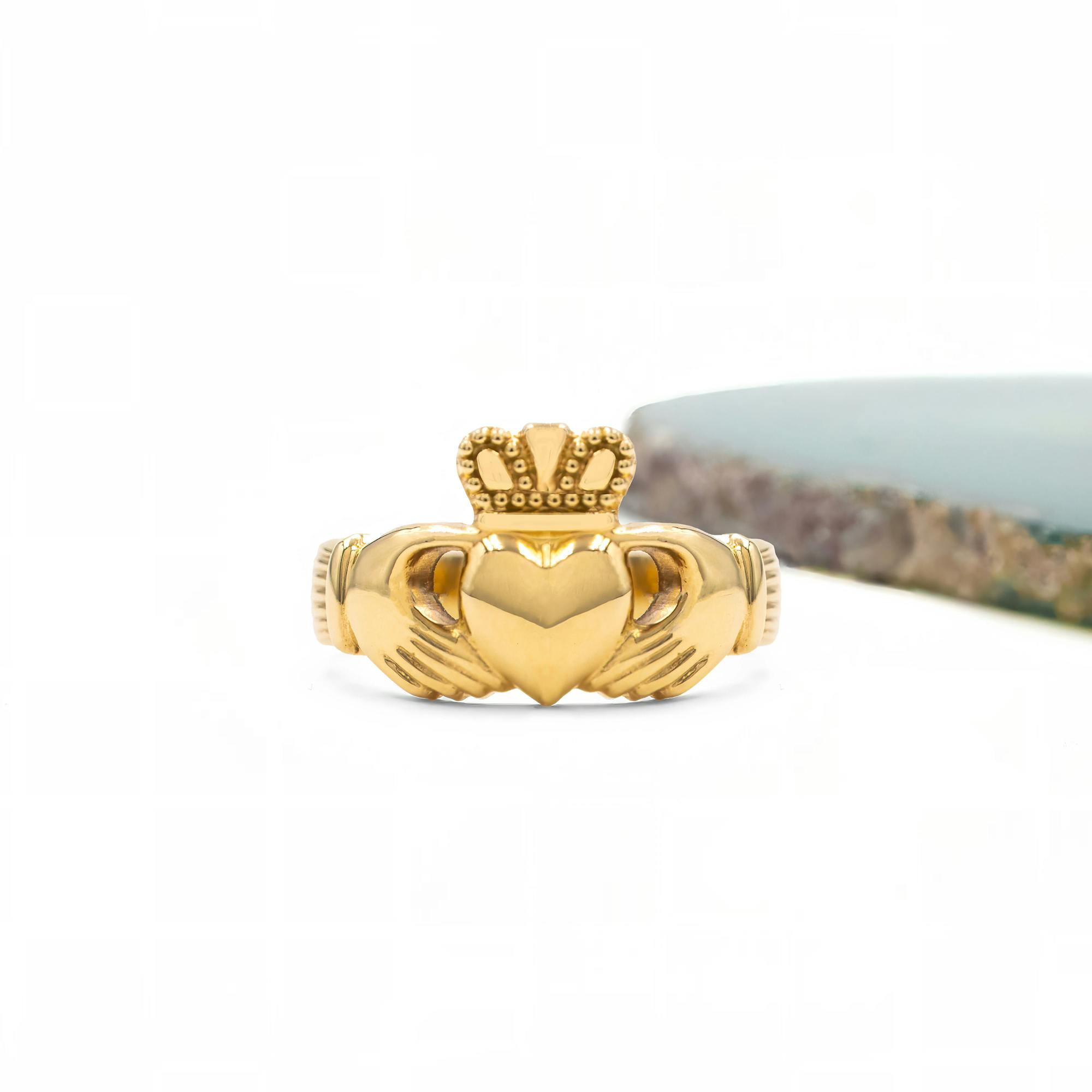 Whether you choose 9K, 14K, or 18K yellow gold, these Claddagh rings are timeless classics. A stunning celebration of Irish culture and craft, these rings will be meticulously made for you here in Ireland.