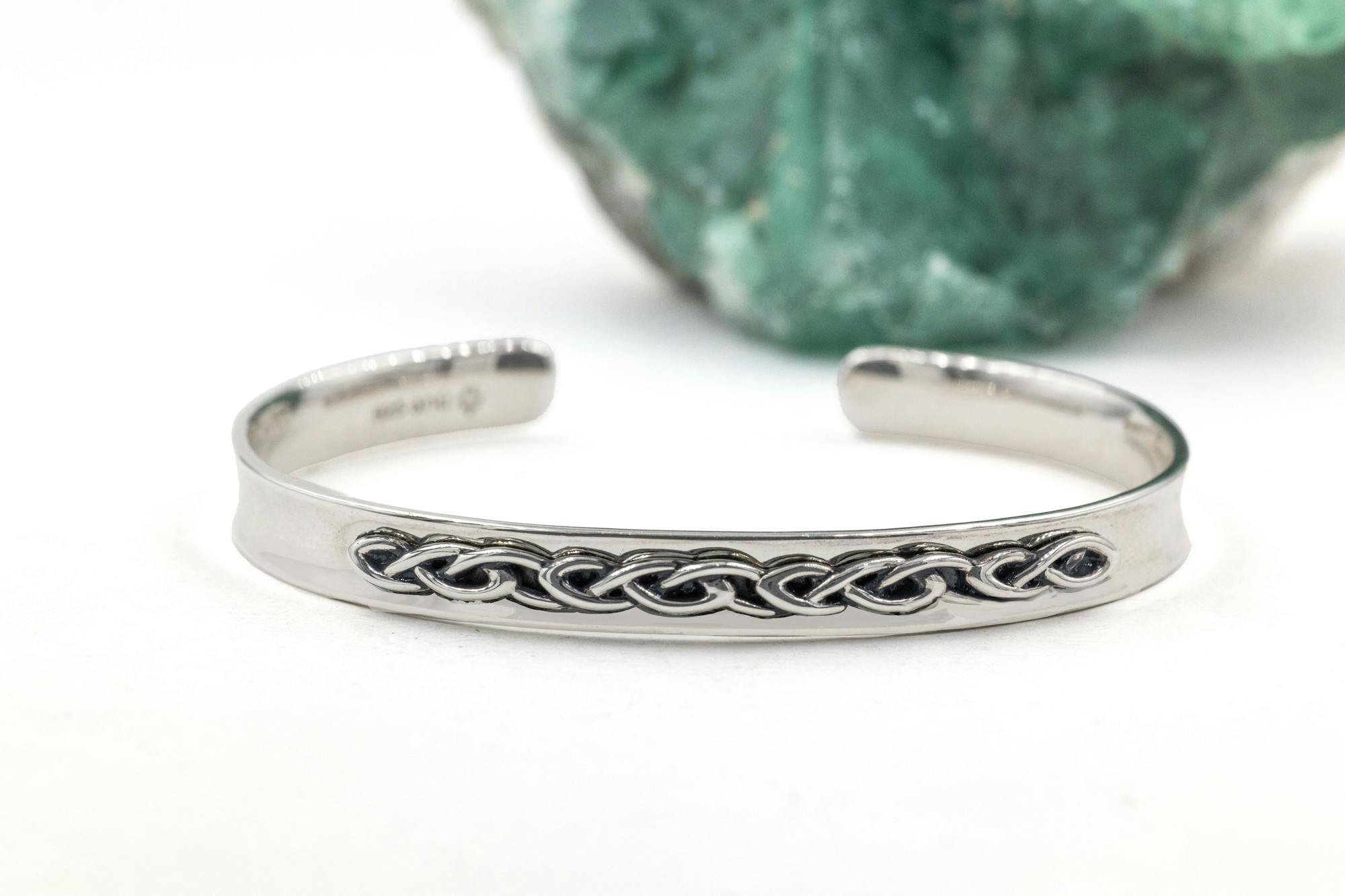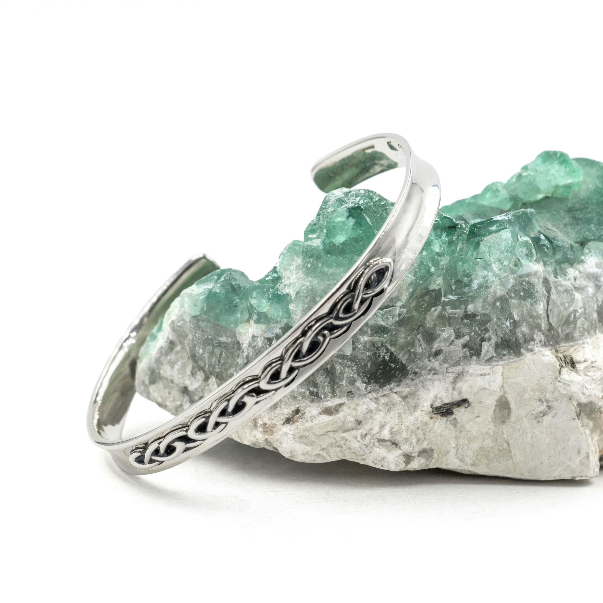 This stunning Celtic knot bangle combines intricate interlace with an iconic open torc shape to echo the treasures of our ancestors.
