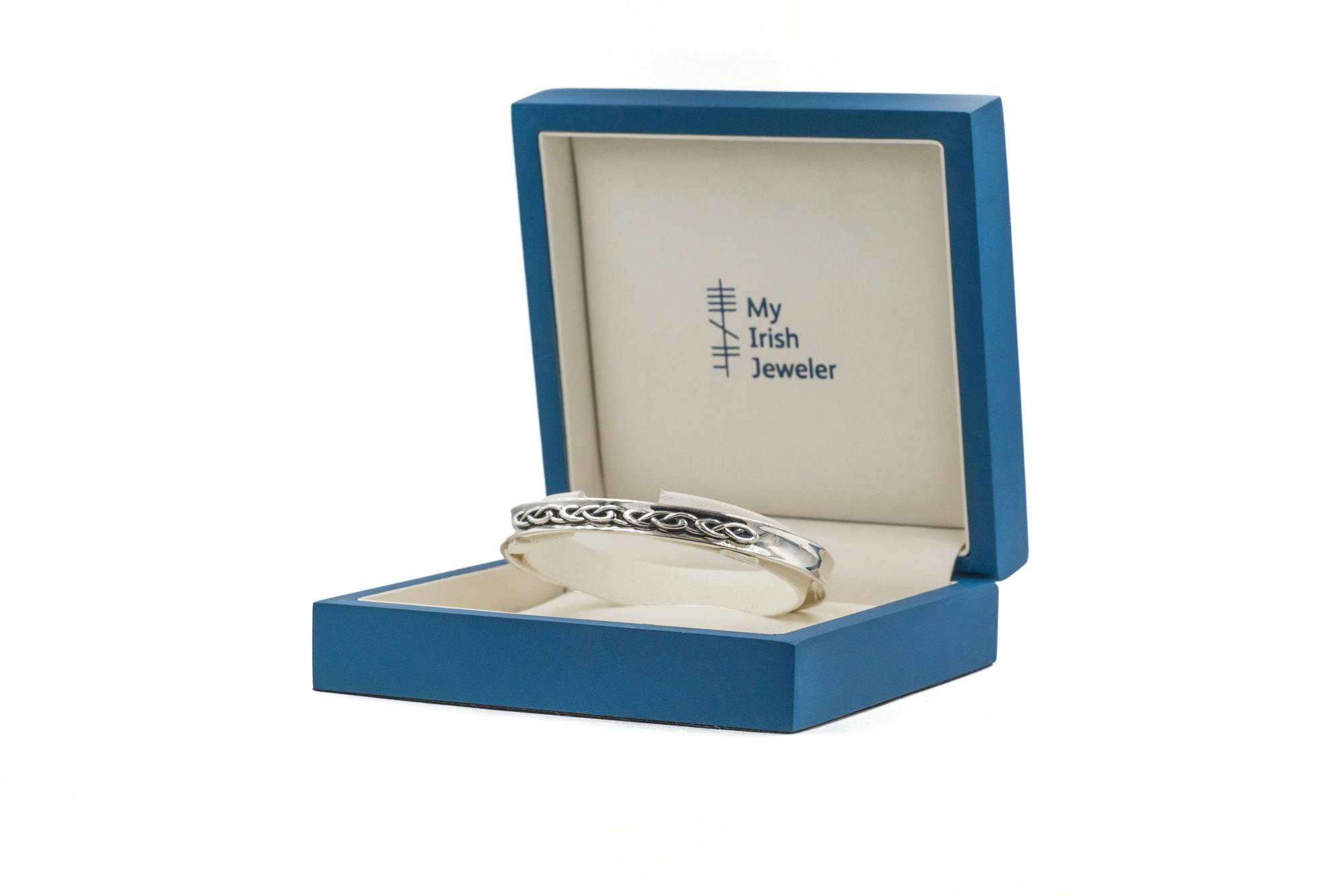 Crafted in solid sterling silver, the bangle is hallmarked at historic Dublin Castle, assuring quality.