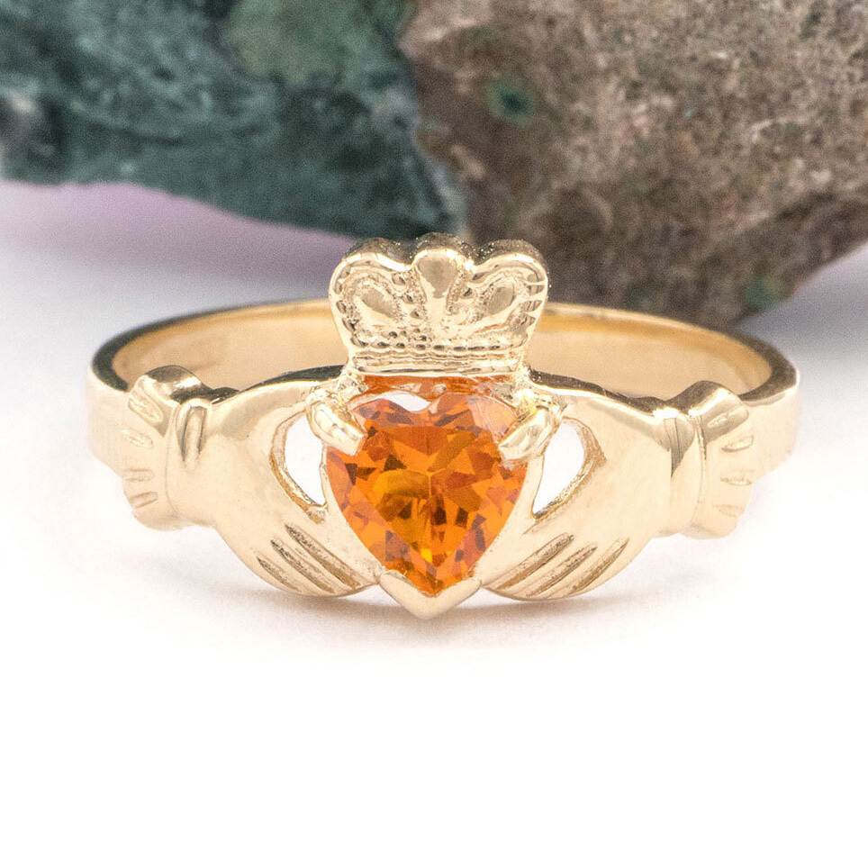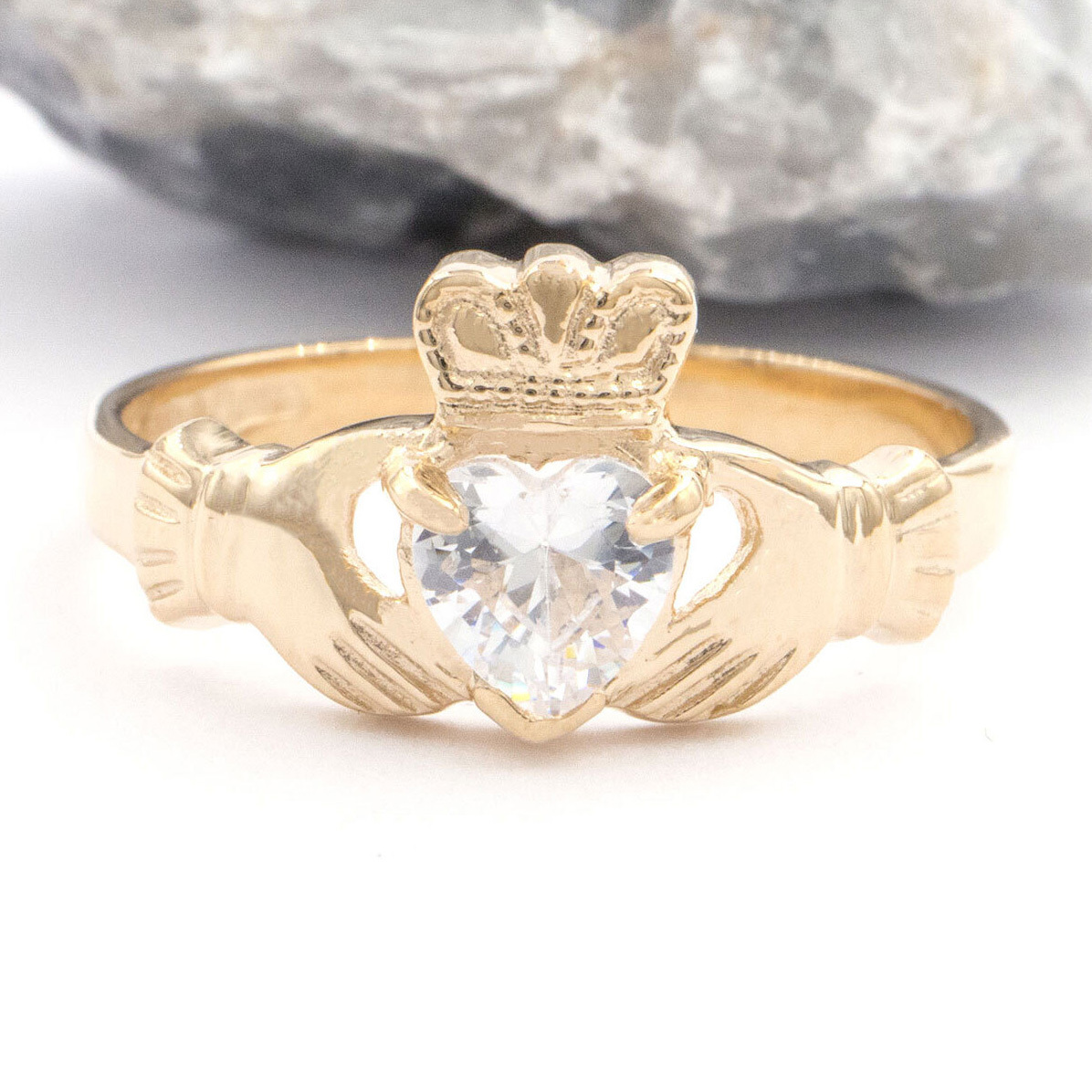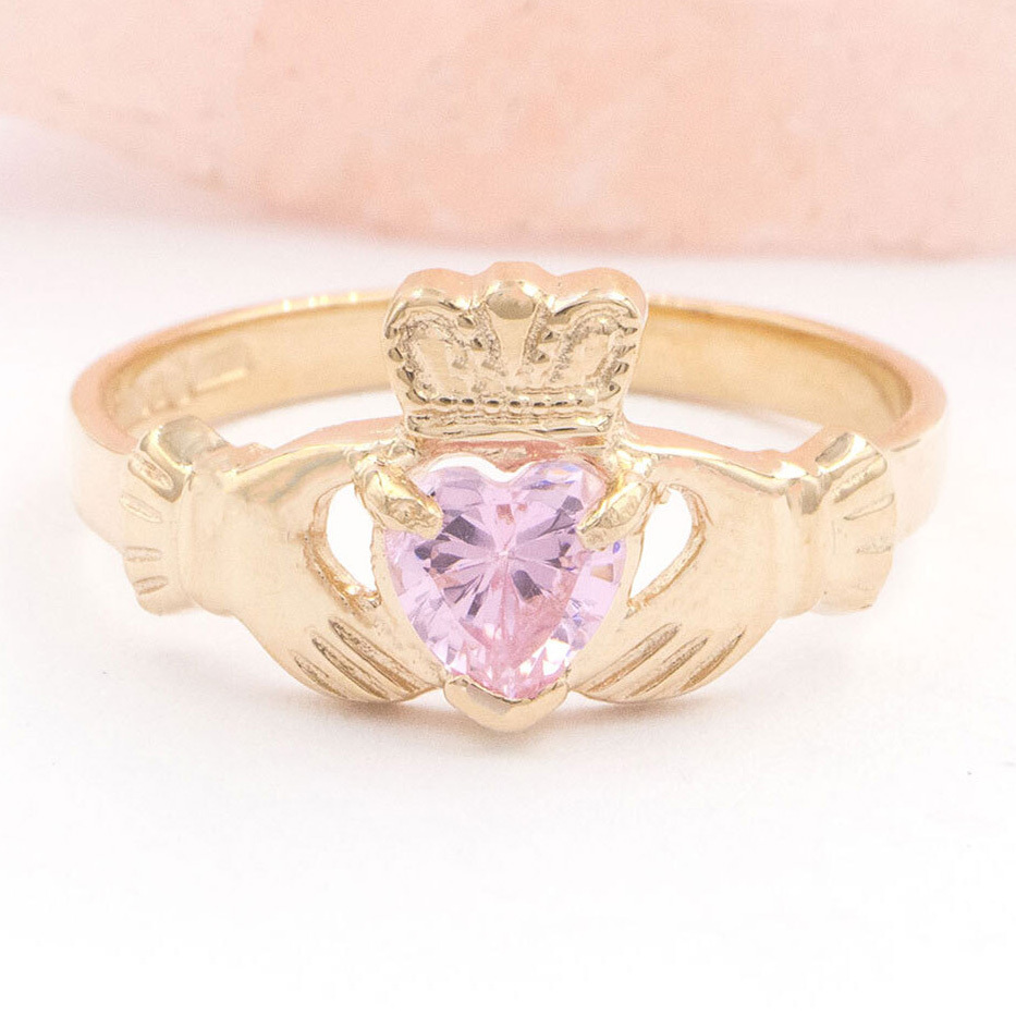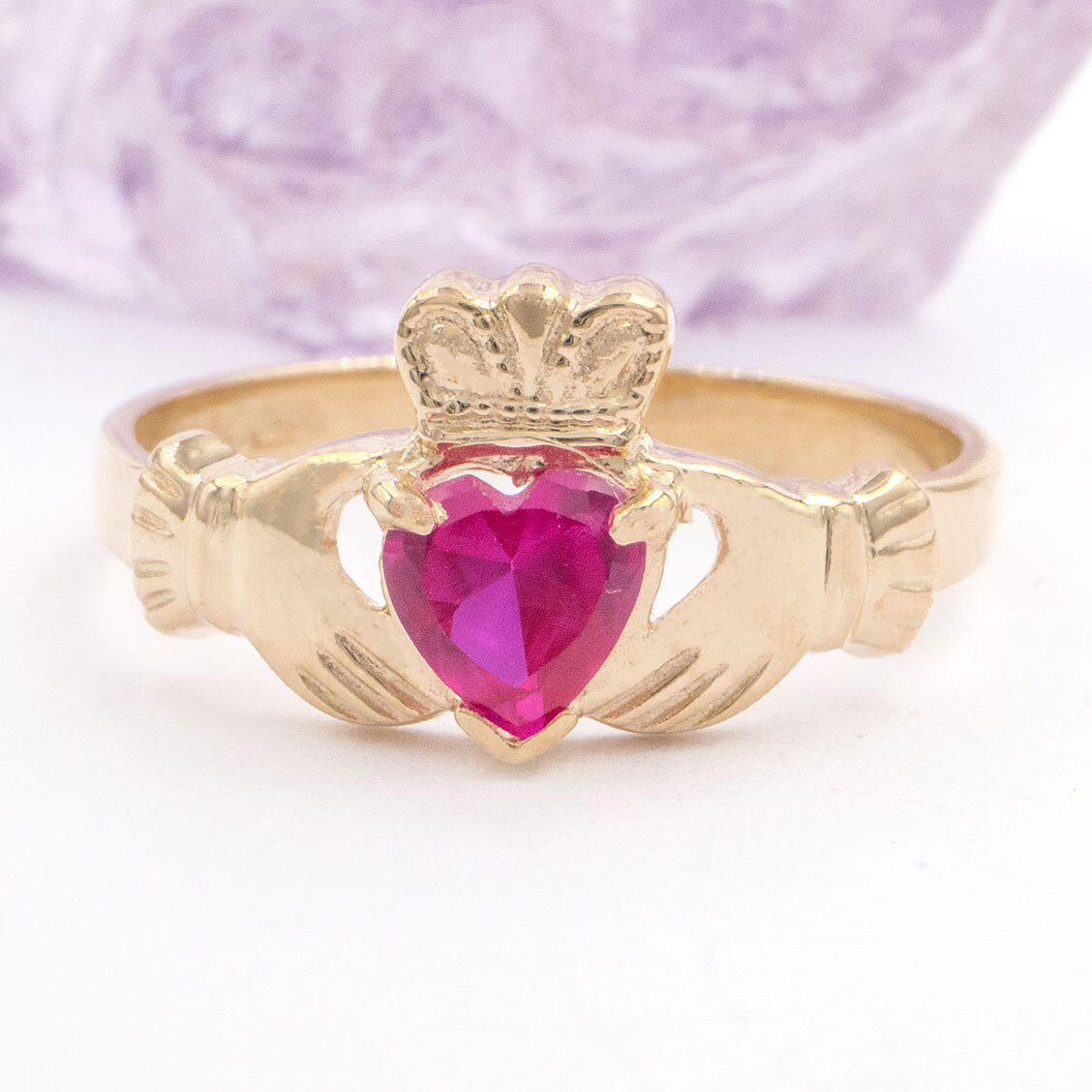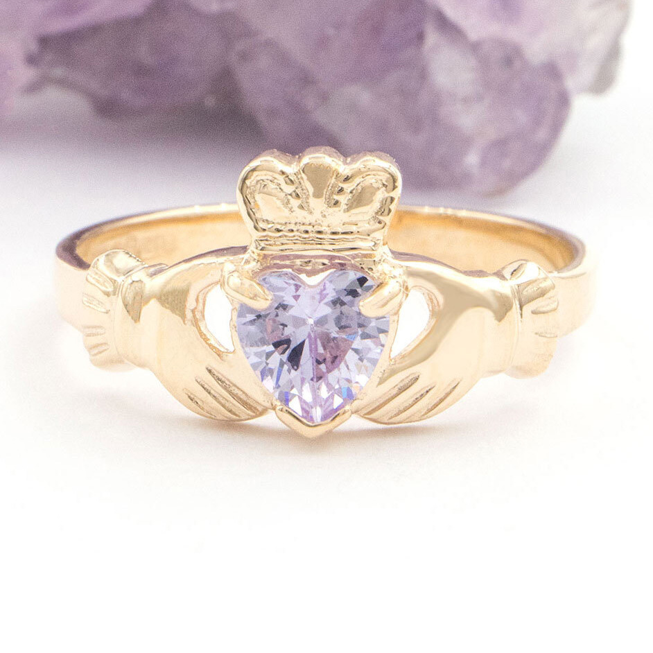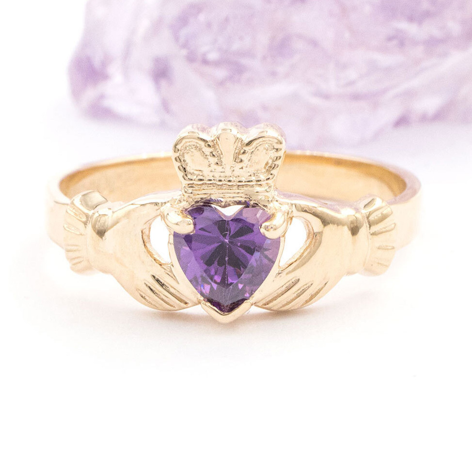 Make this classic 10K gold Claddagh your own with your choice of sparkling CZ birthstone.