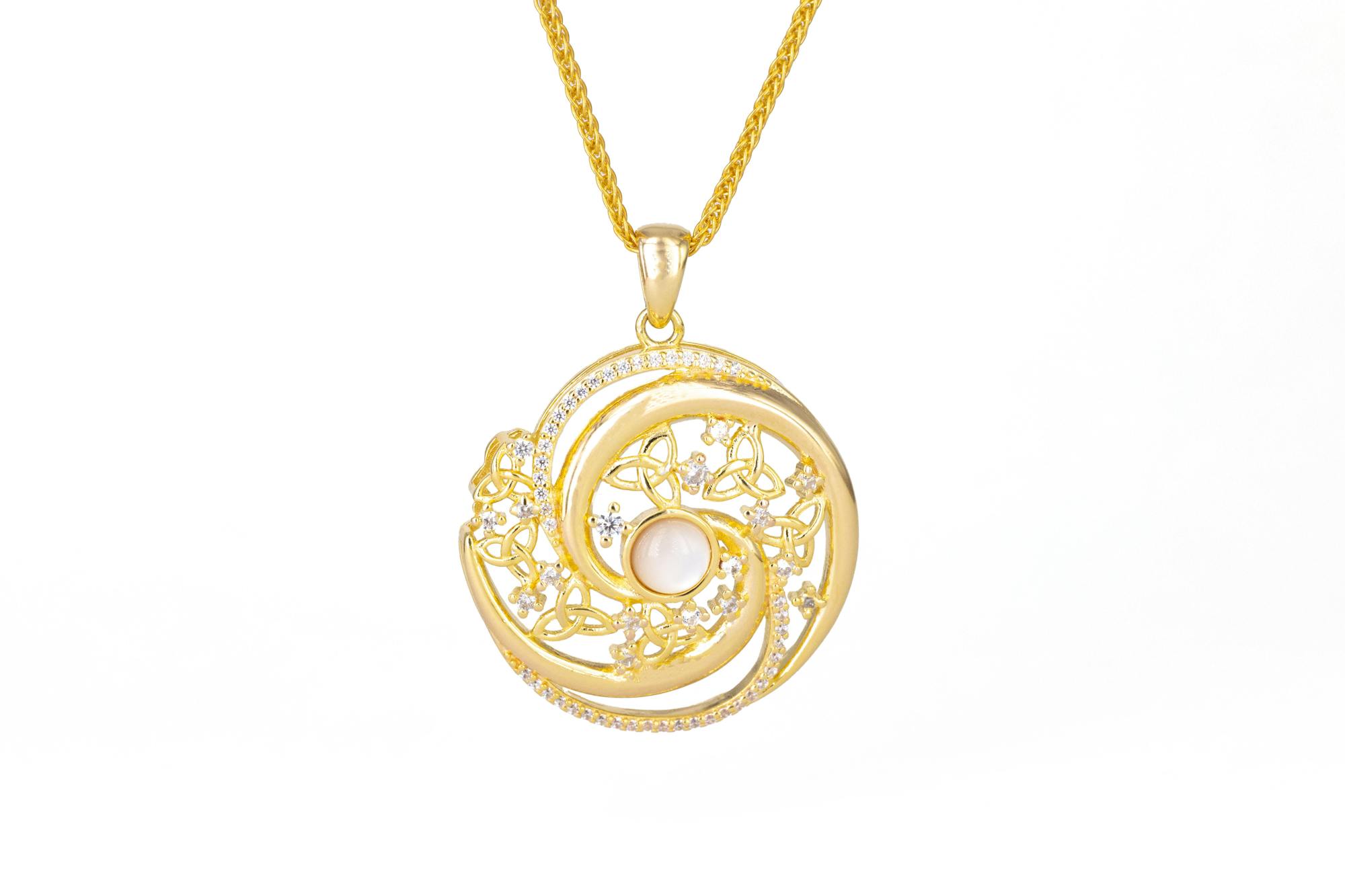Crafted in solid sterling silver with a thick, 3µm layer of 14K gold vermeil, this necklace has been hallmarked at Dublin castle assuring quality.
