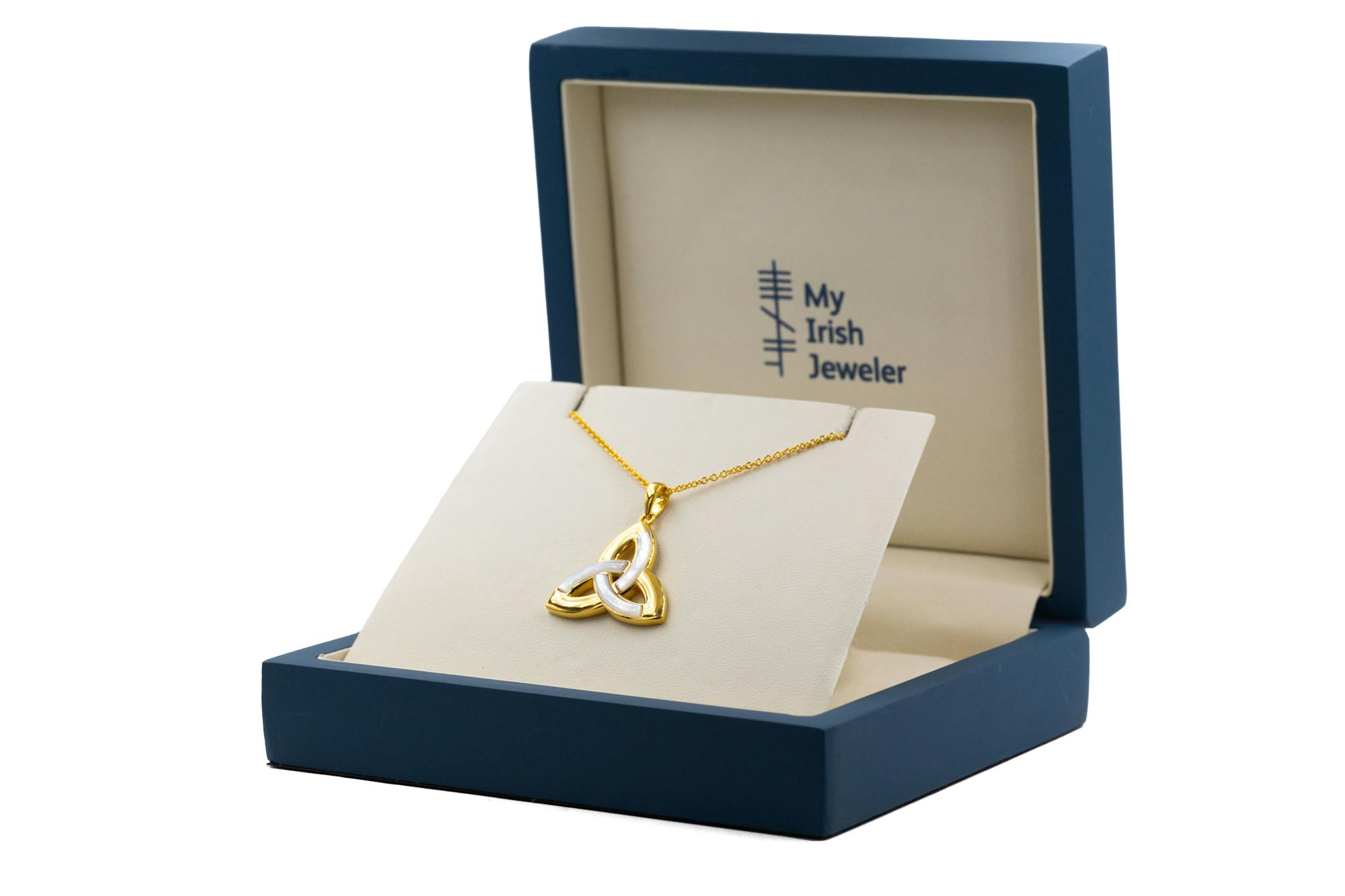 Crafted in solid sterling silver with a thick, 3µm layer of 14K gold vermeil, this necklace has been hallmarked at Dublin castle assuring quality.
