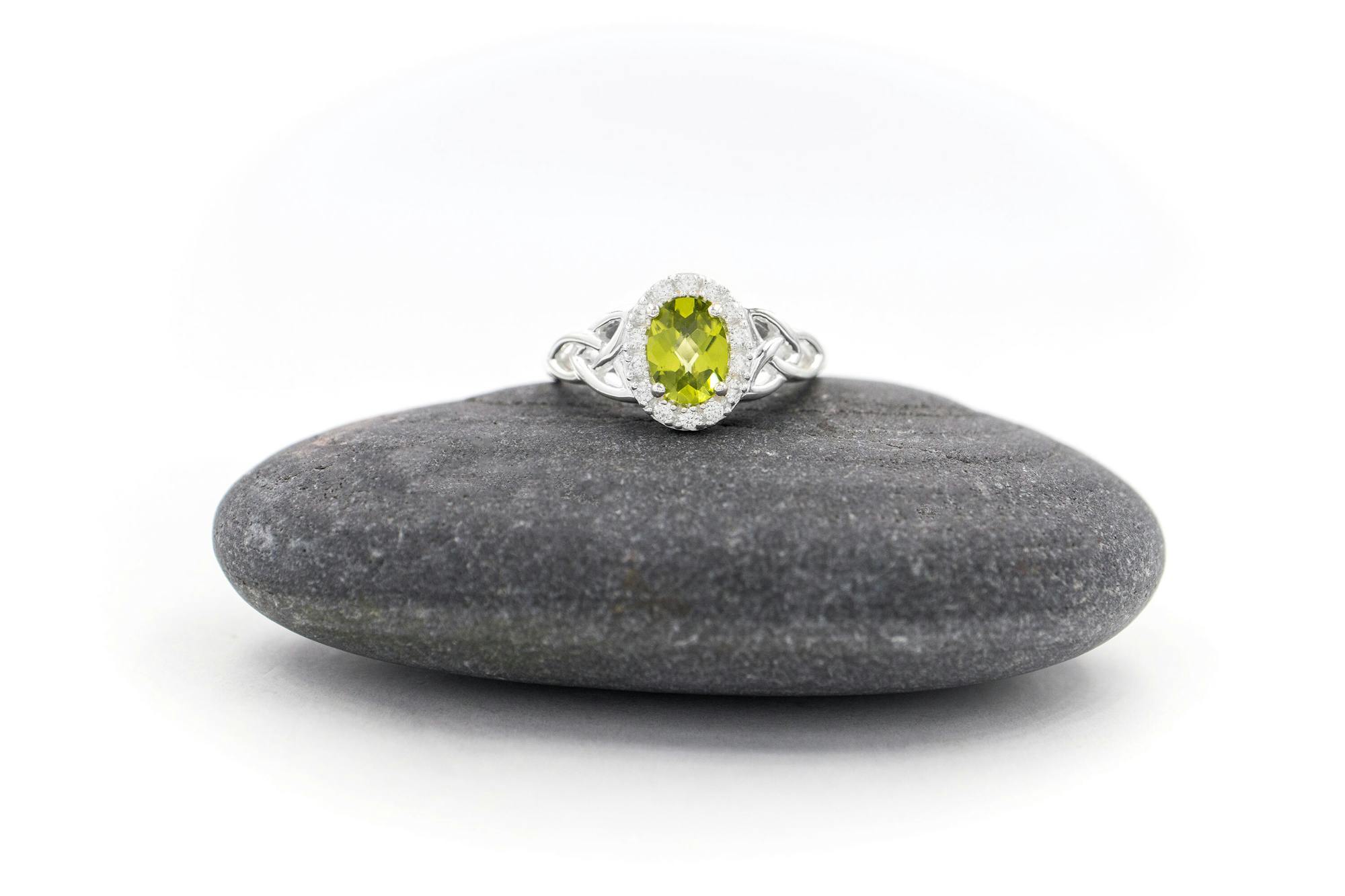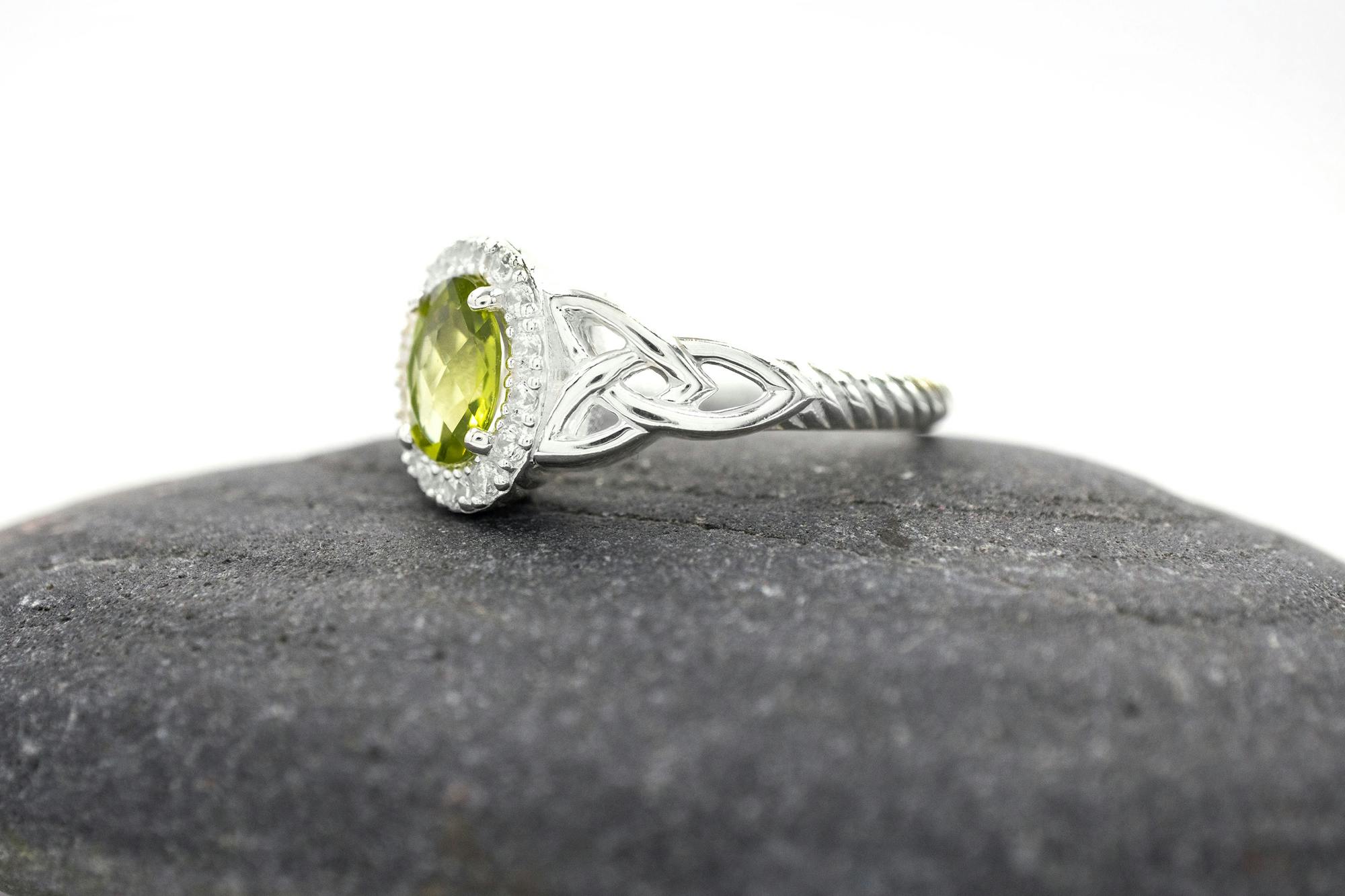 Choose from three delightful center stone options: Brazilian amethyst, white topaz, and high-quality peridot. Each stone has a unique and beautiful appearance, making the ring versatile enough to suit any style.