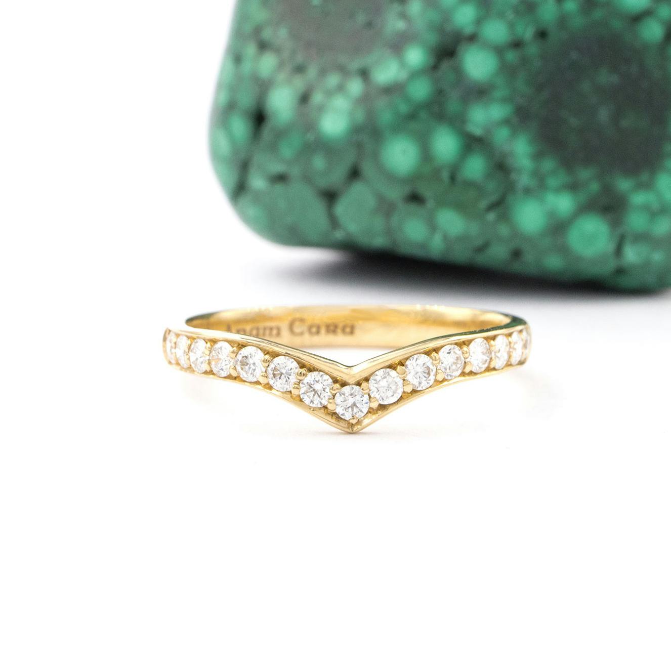 The perfect match for many of our Celtic engagement rings including our timeless 14K Oval Diamond Trinity Knot Ring. Set with sparkling pavė diamonds, this narrow wishbone band has been engraved with the phrase "Mo Anam Cara" - My soul mate in Irish. This carefully crafted band will nestle in perfectly with an engagement ring, ensuring a comfortable fit that can be worn proudly every day of your life together.