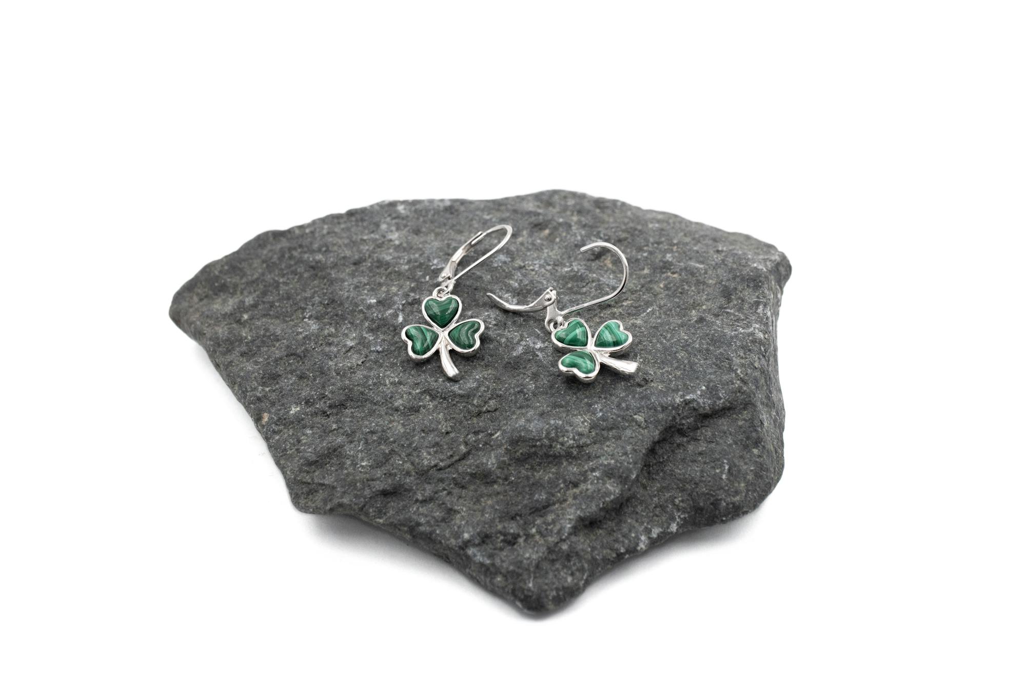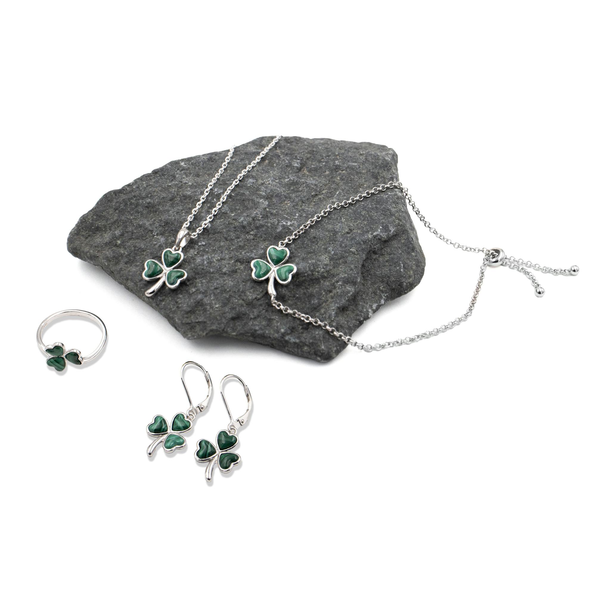 Sterling silver and vivid green malachite combine for a charming matching set, perfect for gifting or celebrating a connection to Ireland.