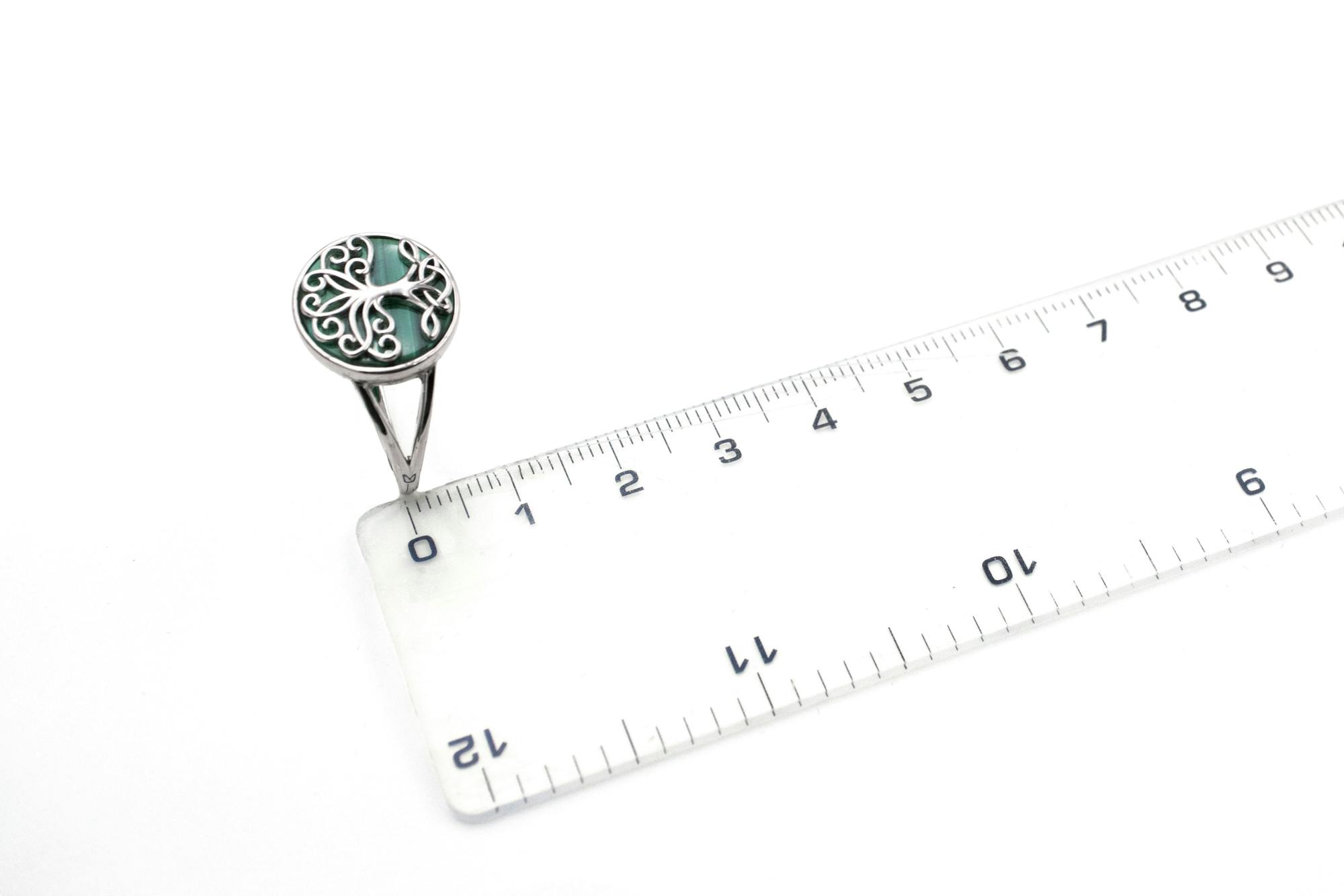 The table of this striking ring measures 19mm across, tapering to the back for a comfortable yet substantial ring. Love the look? Complete the set with our matching malachite tree of life necklace, earrings, or bracelet.