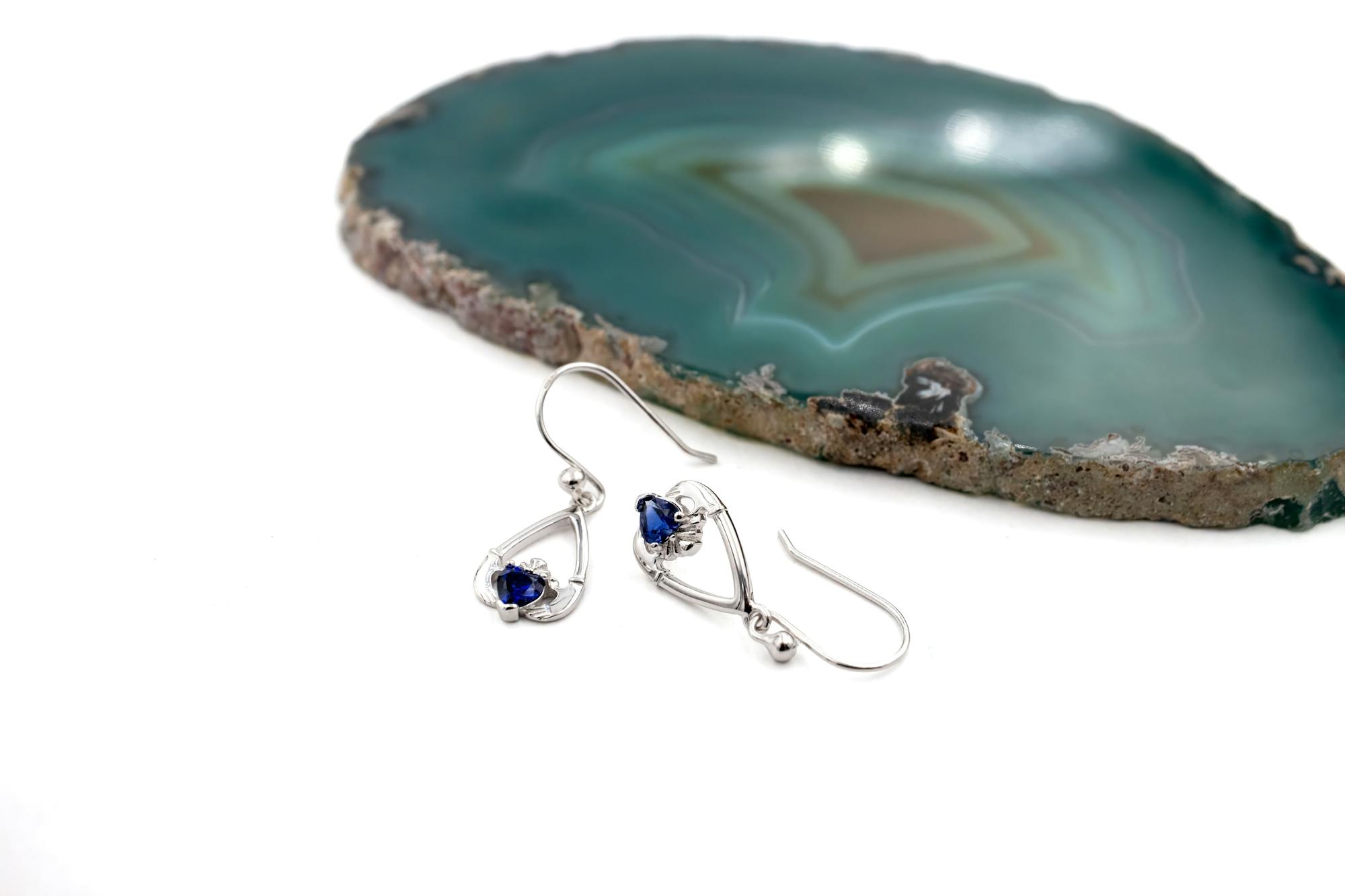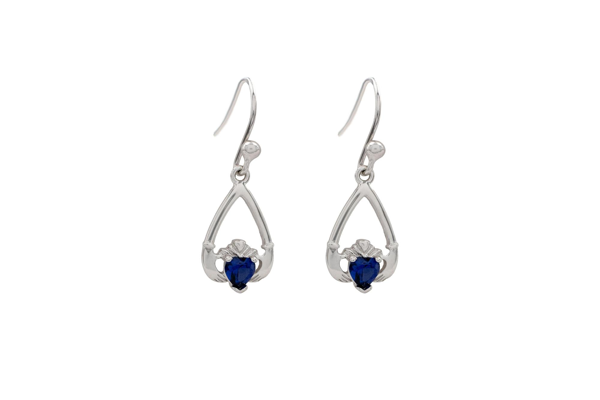Stunning Sterling Silver Claddagh drop earrings set with the birthstone of your choice.