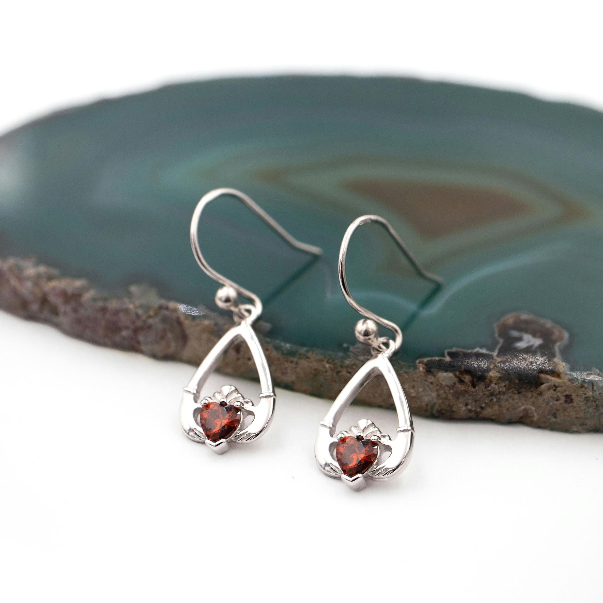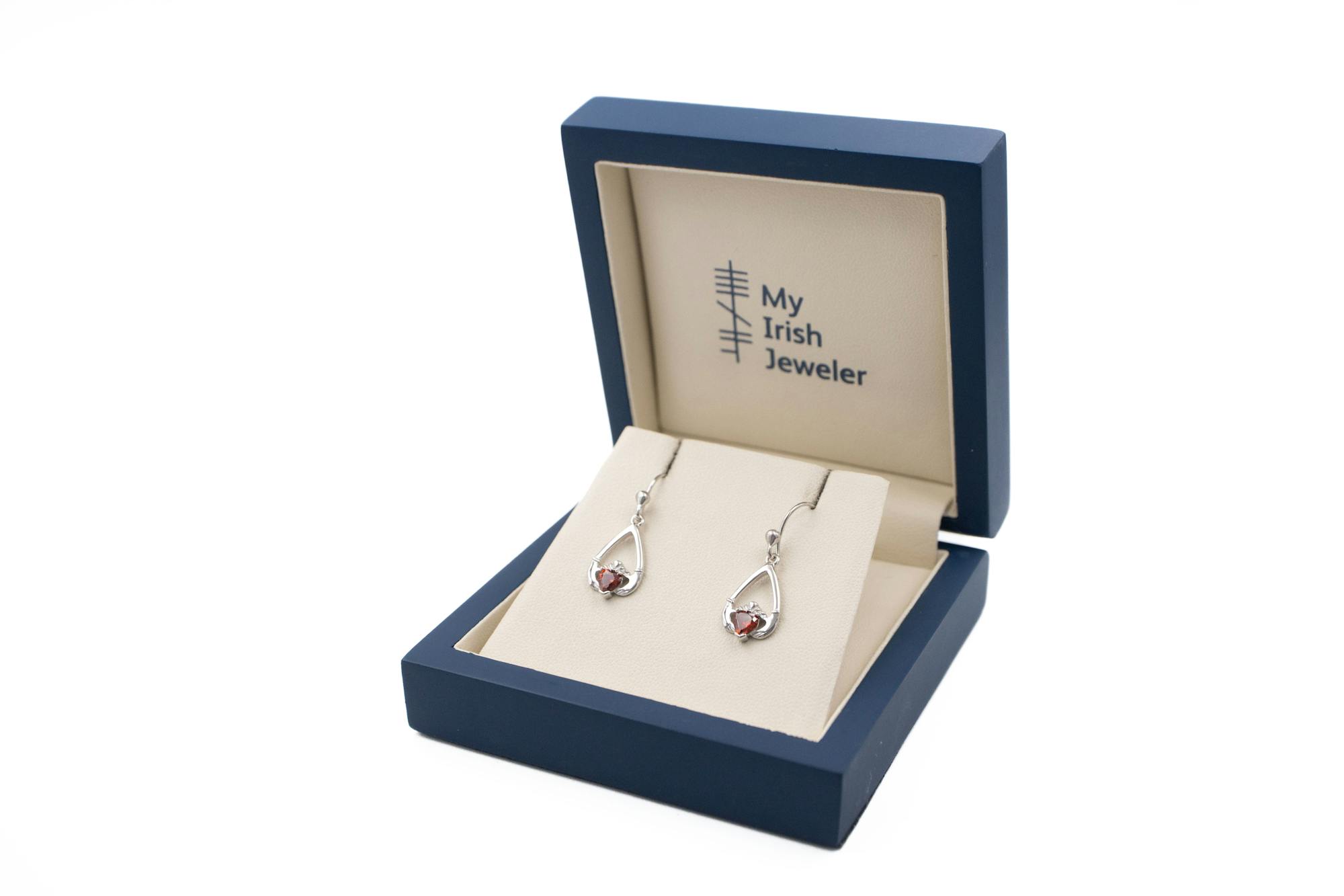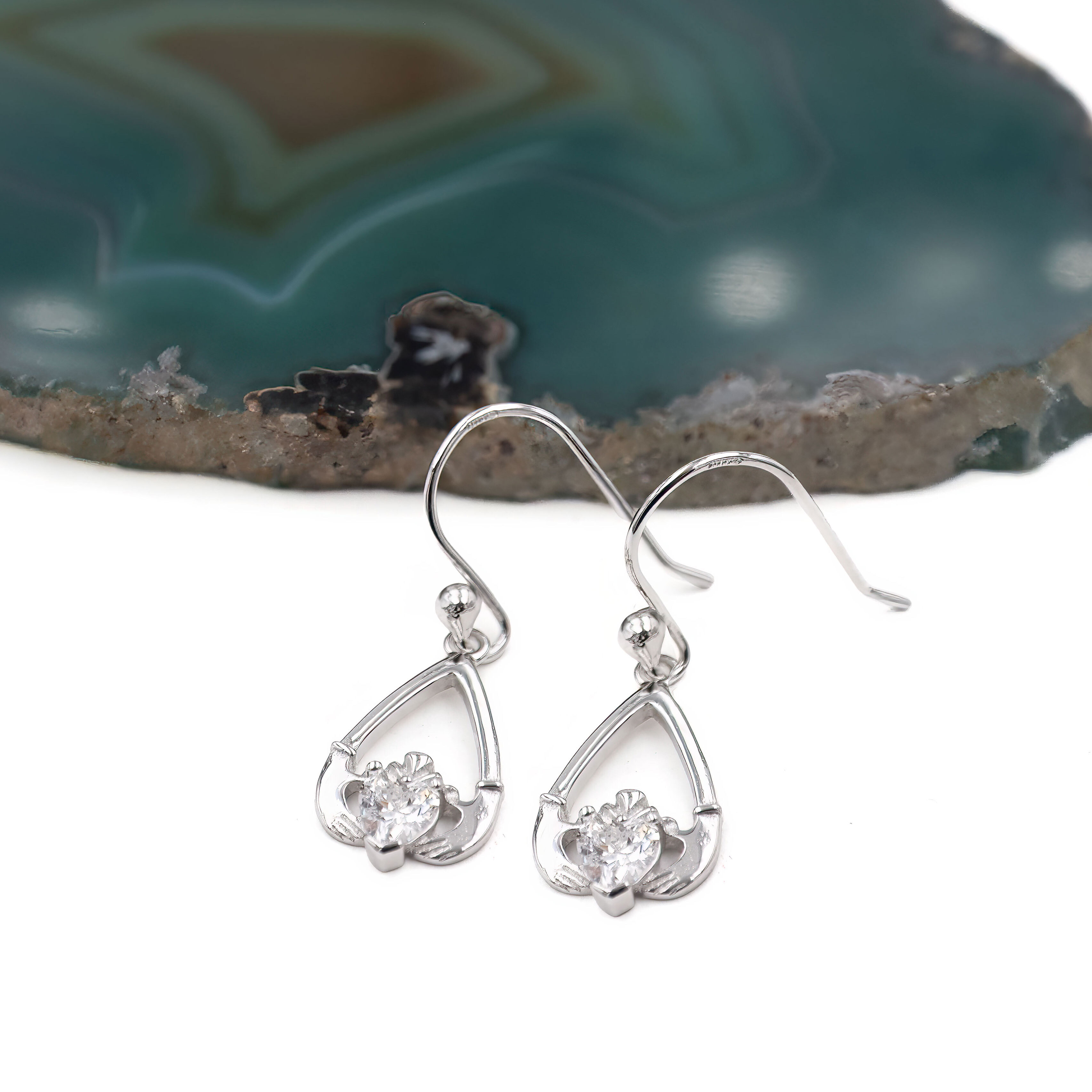 These teardrop shaped, sterling silver, Claddagh earrings are a beautiful and symbolic piece to wear or to gift.