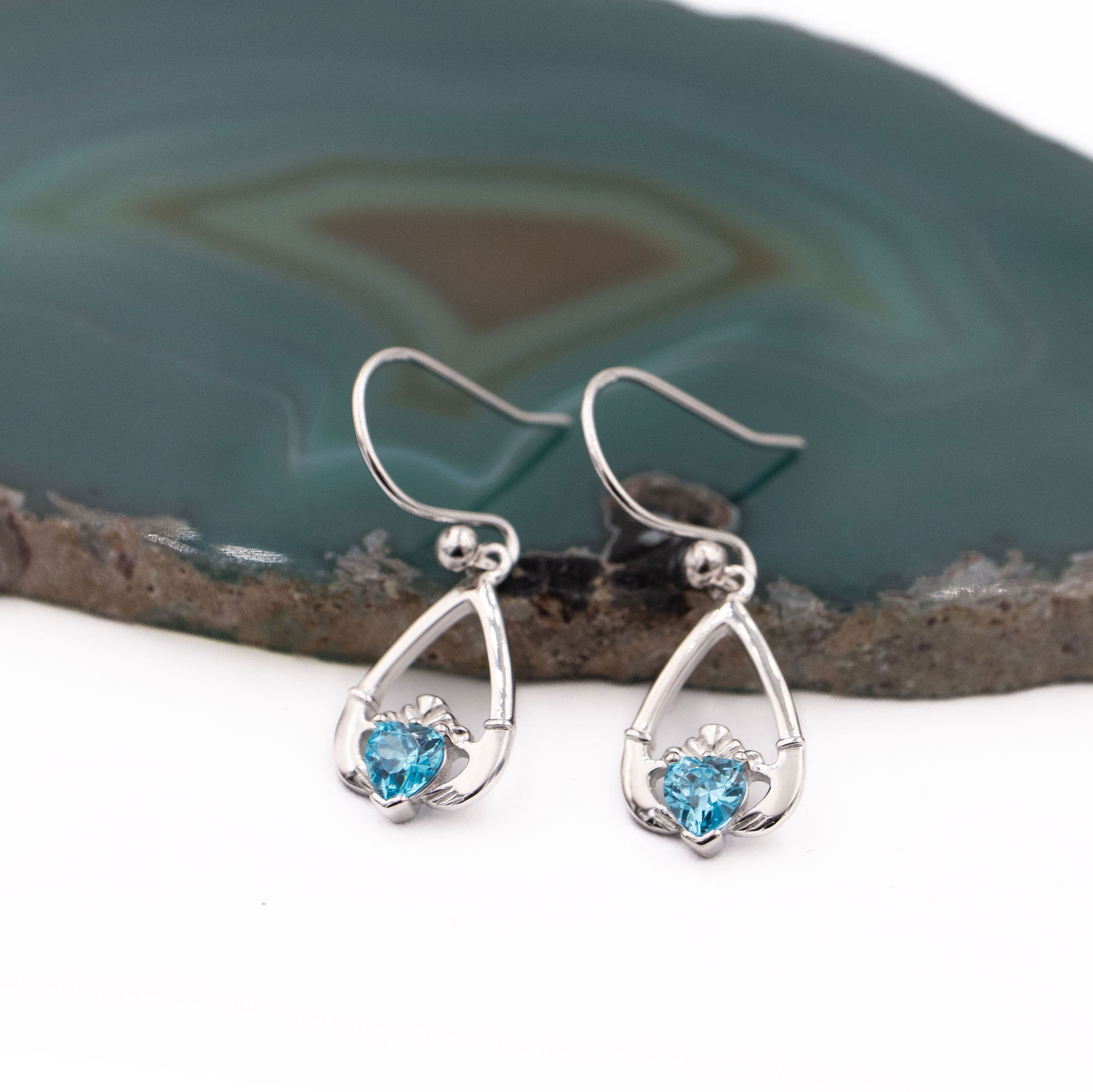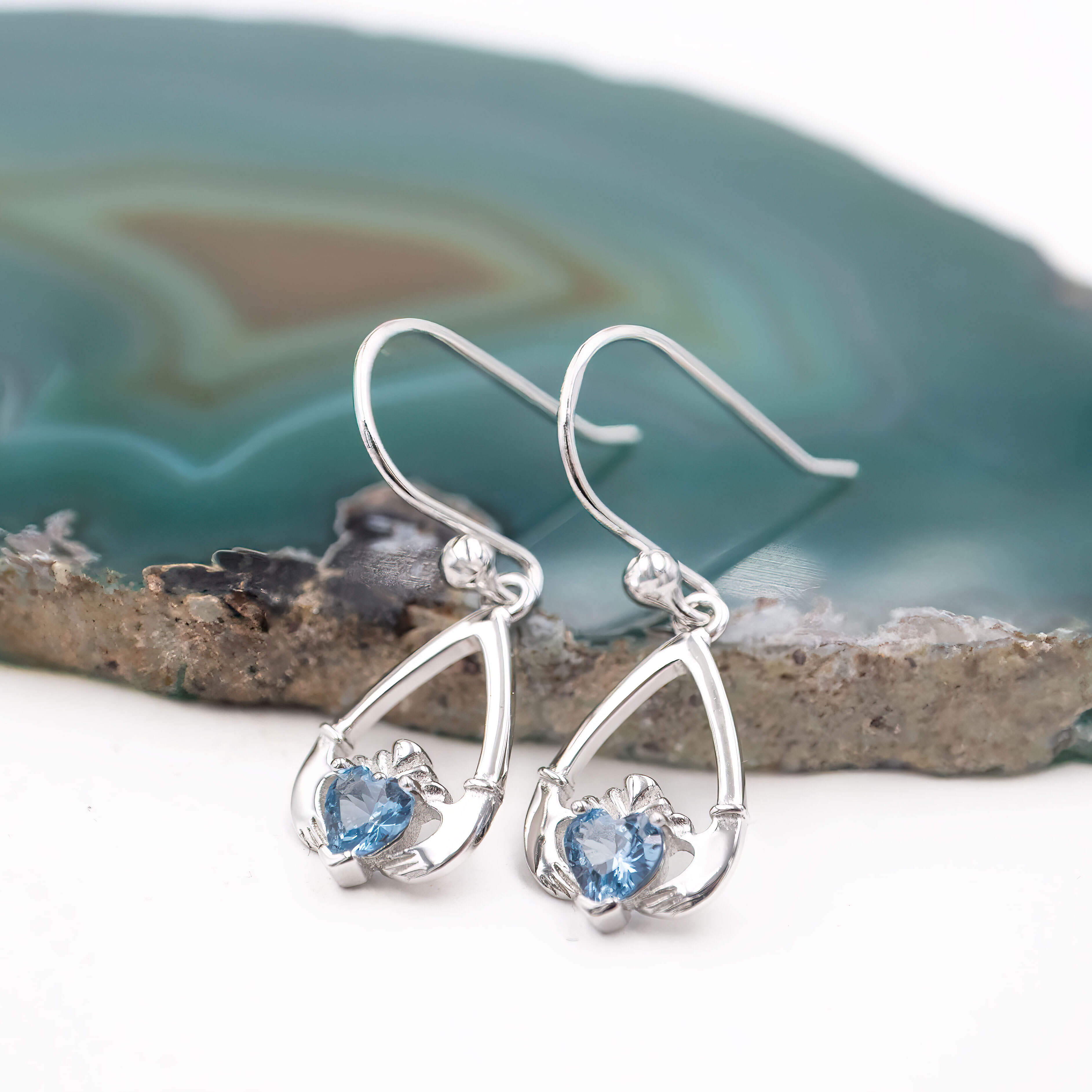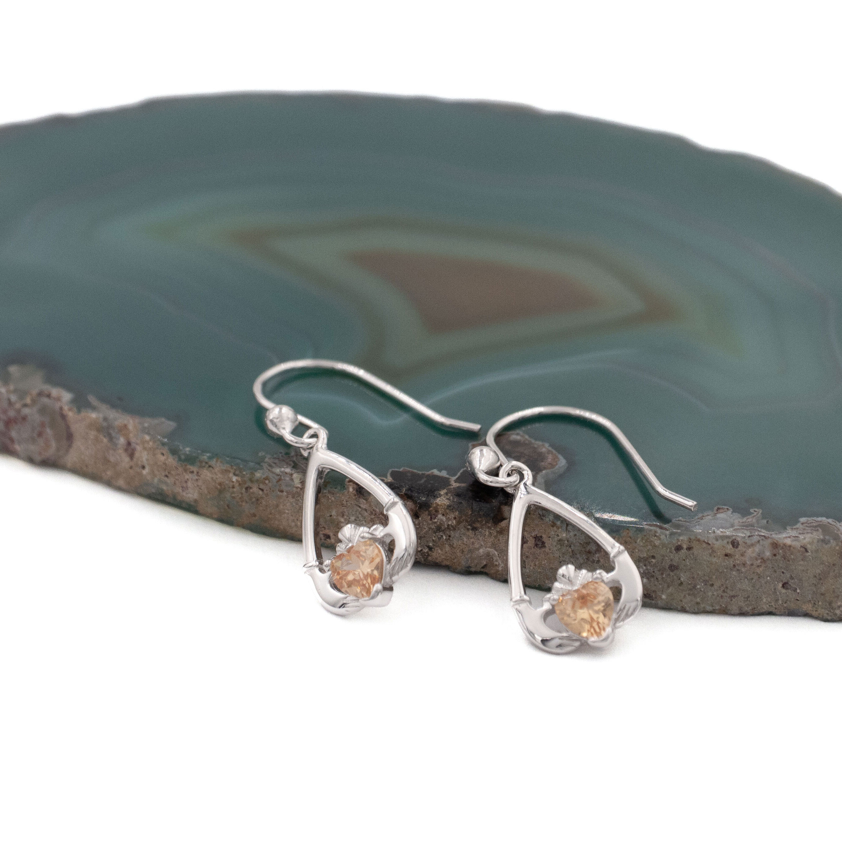 These teardrop shaped, sterling silver, Claddagh earrings are a beautiful and symbolic piece to wear or to gift.