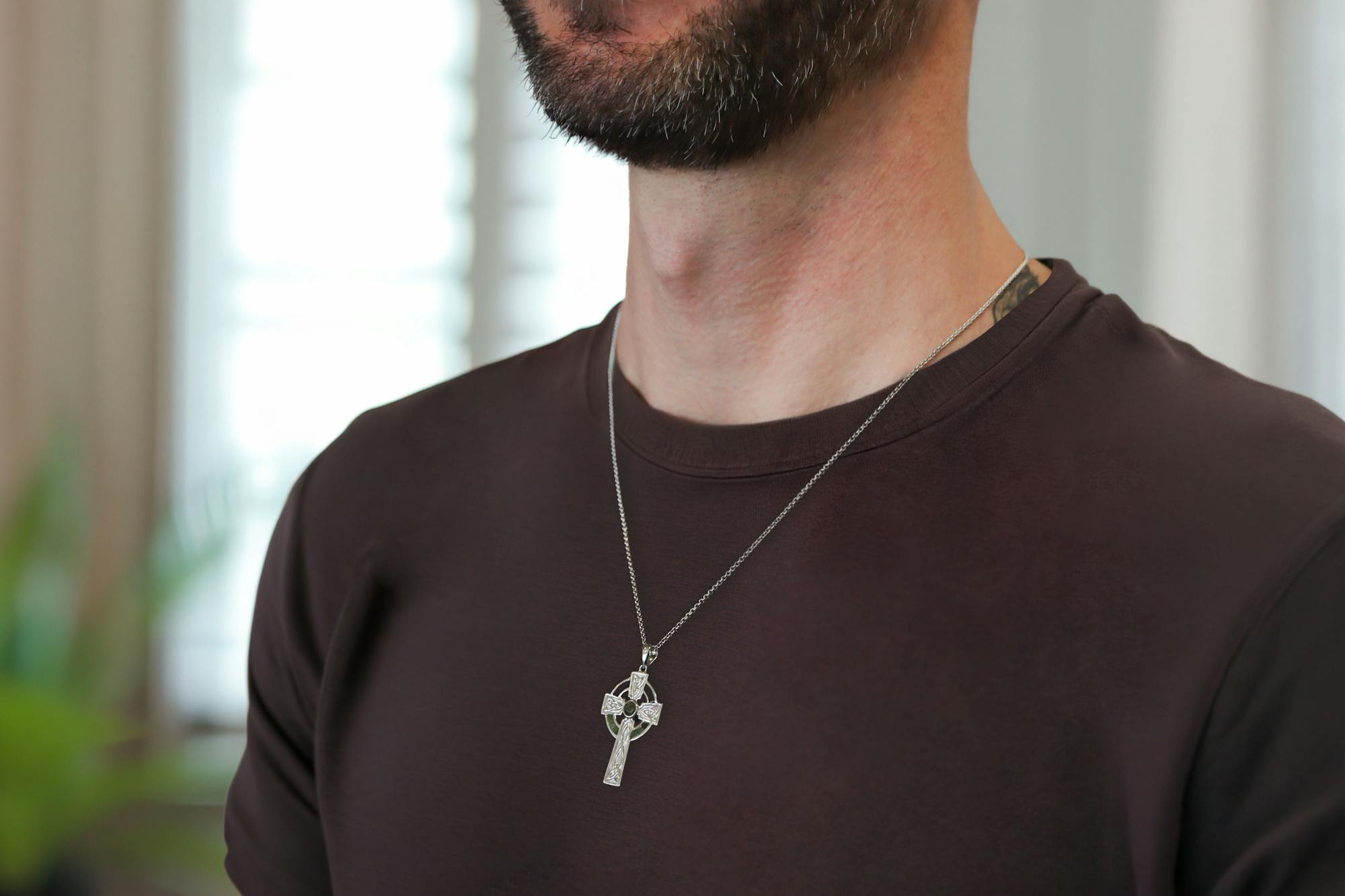 The cross is available in two sizes. The smaller cross measures 1" in height including a polished bale and includes an 18 inch sterling silver cable chain. The larger cross measures a substantial 1.6 inches, also on an 18 inch chain, and is perfect for a gent or those that prefer a striking accessory. For those that prefer a longer or chunkier chain, choose from our handpicked selection that pair perfectly with this Celtic cross.