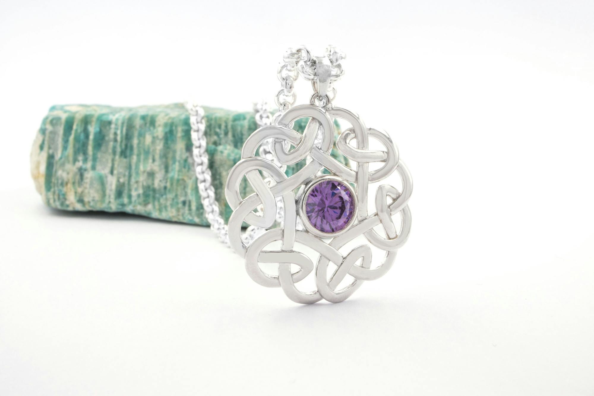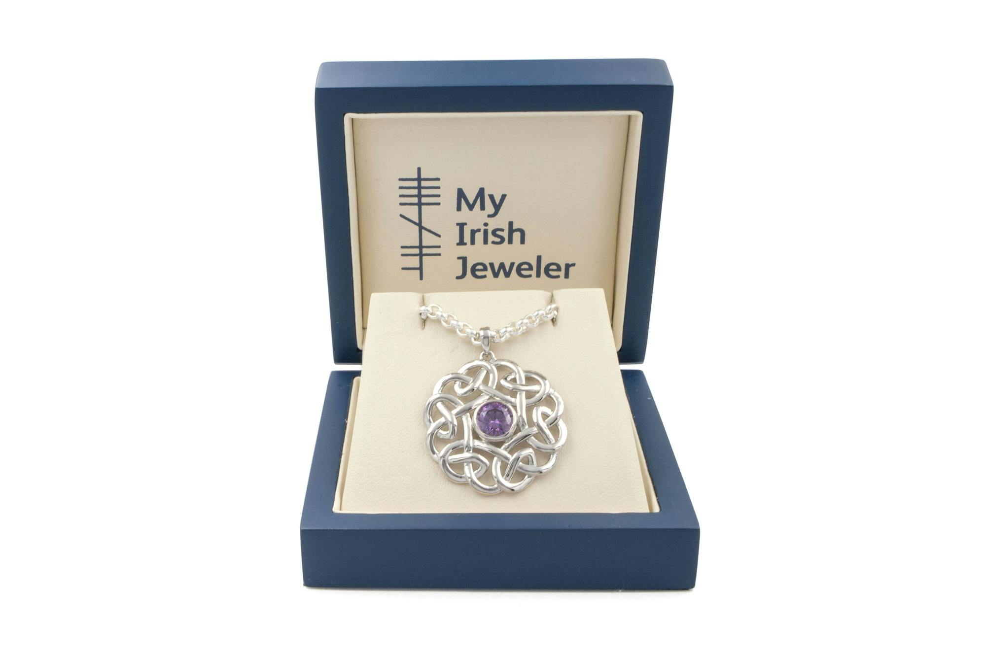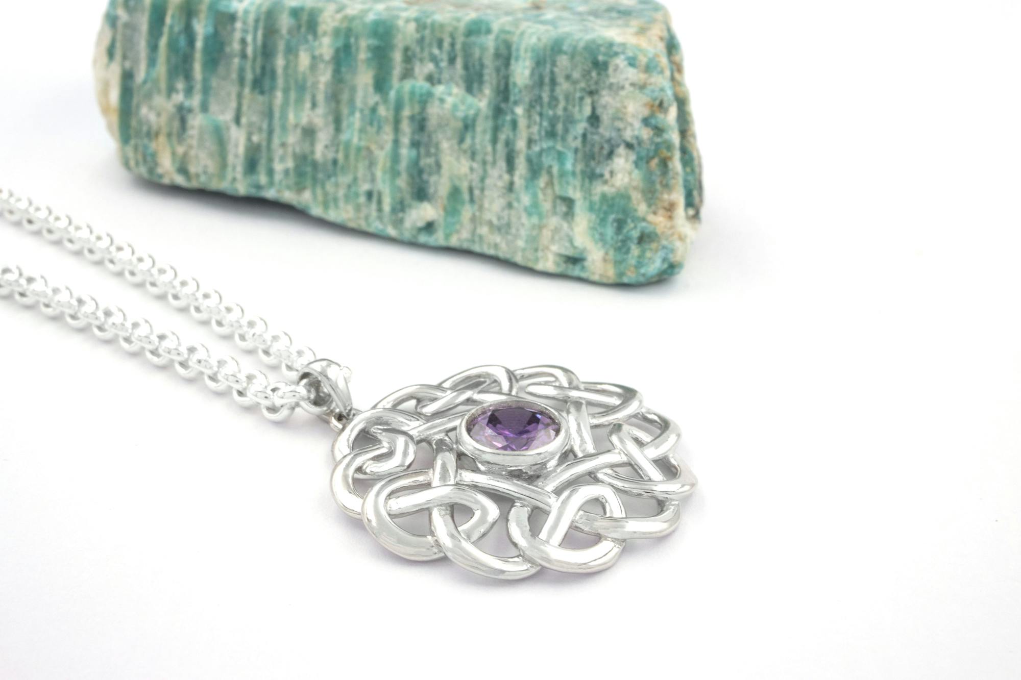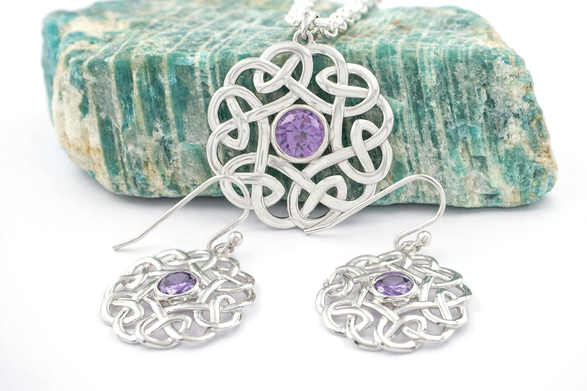 Sterling Silver Heritage Celtic Knot Necklace Set With Amethyst CZ