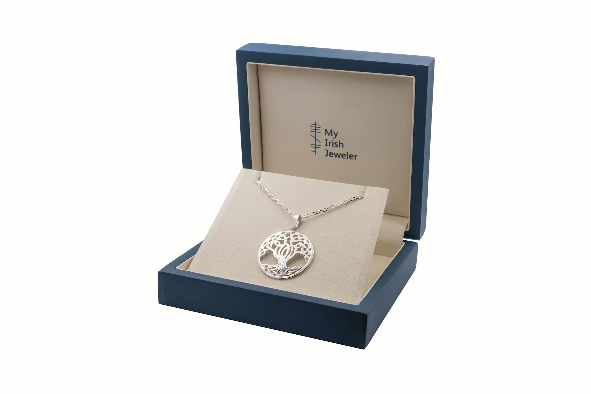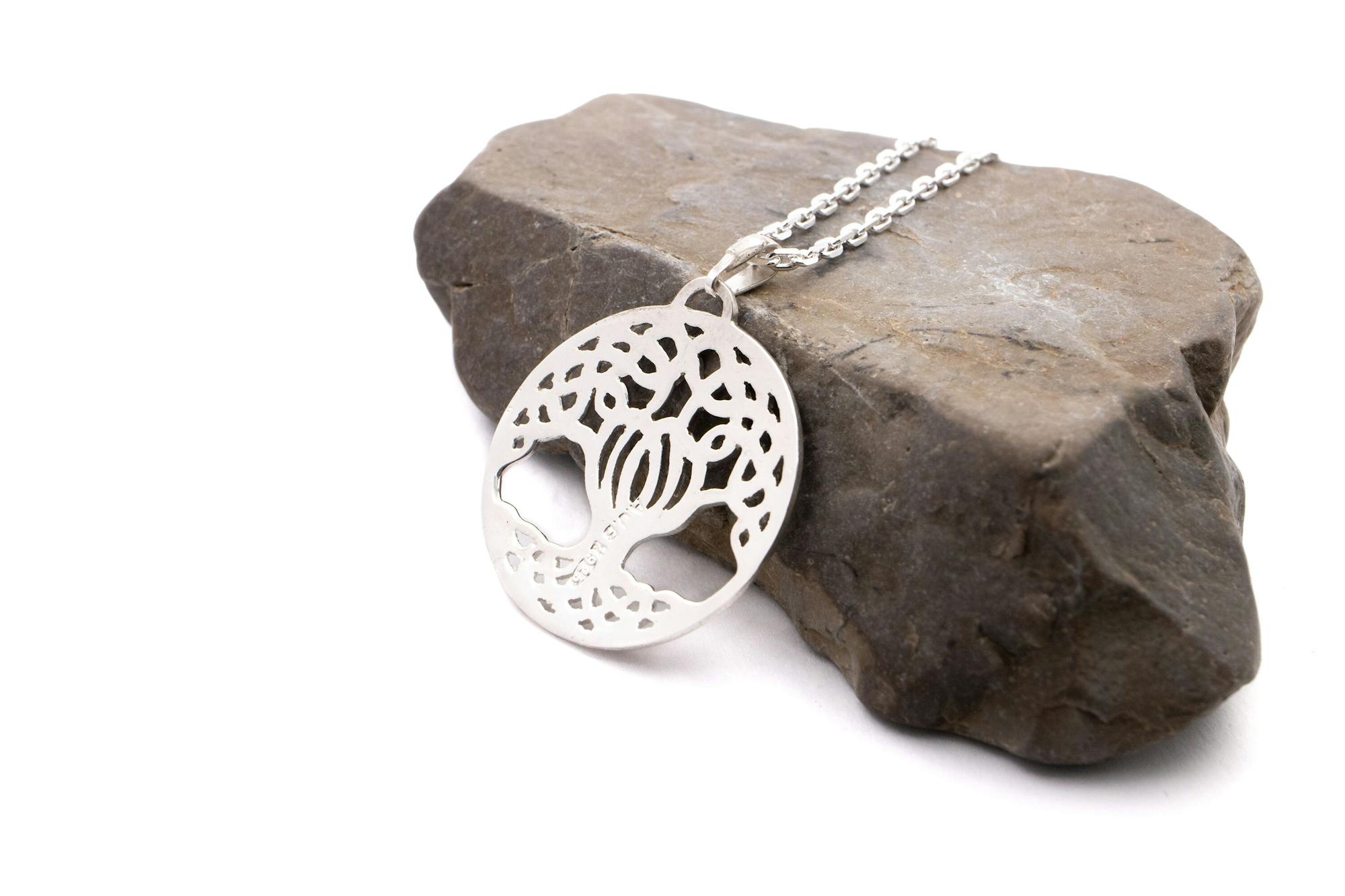This handmade tree of life necklace is really something special. Solid, strong and robust, the tree is designed with graceful spreading branches that capture a soft flowing motion. The overall impression is one of elegance with hidden strength and depth. The pattern has been painstakingly cut out with exacting precision by master silversmith Aidan Breen, for a necklace with splendid detail.